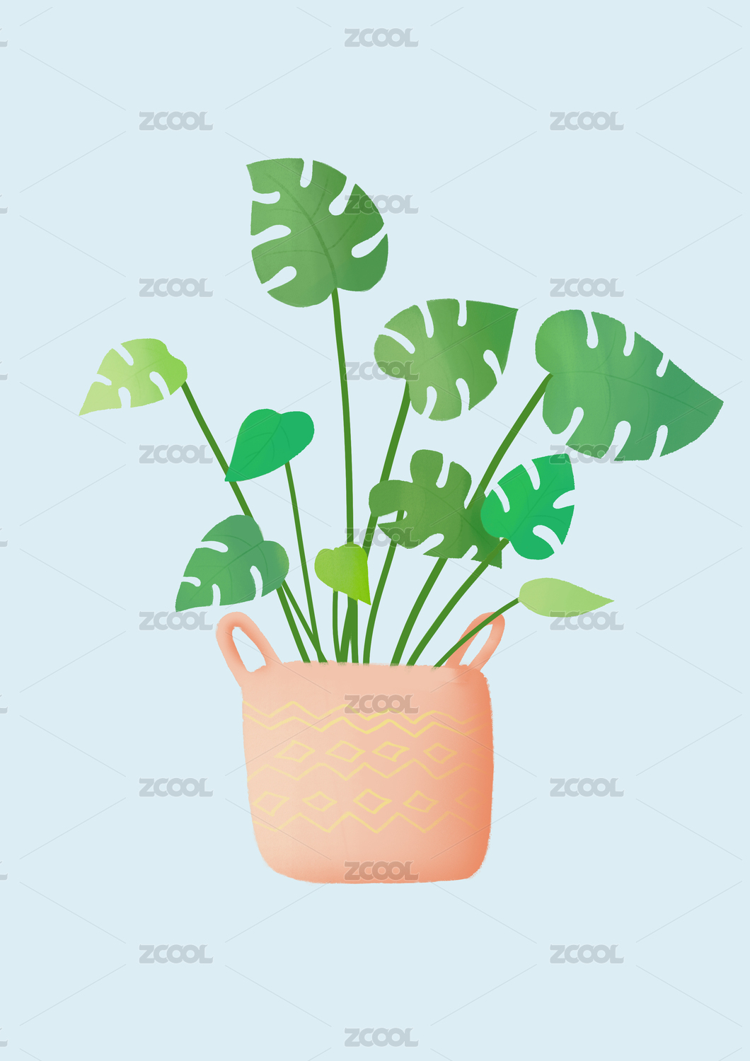 绿植,多肉,盆栽,花盆,插画,卡通,植物,绿叶,圆形,装饰