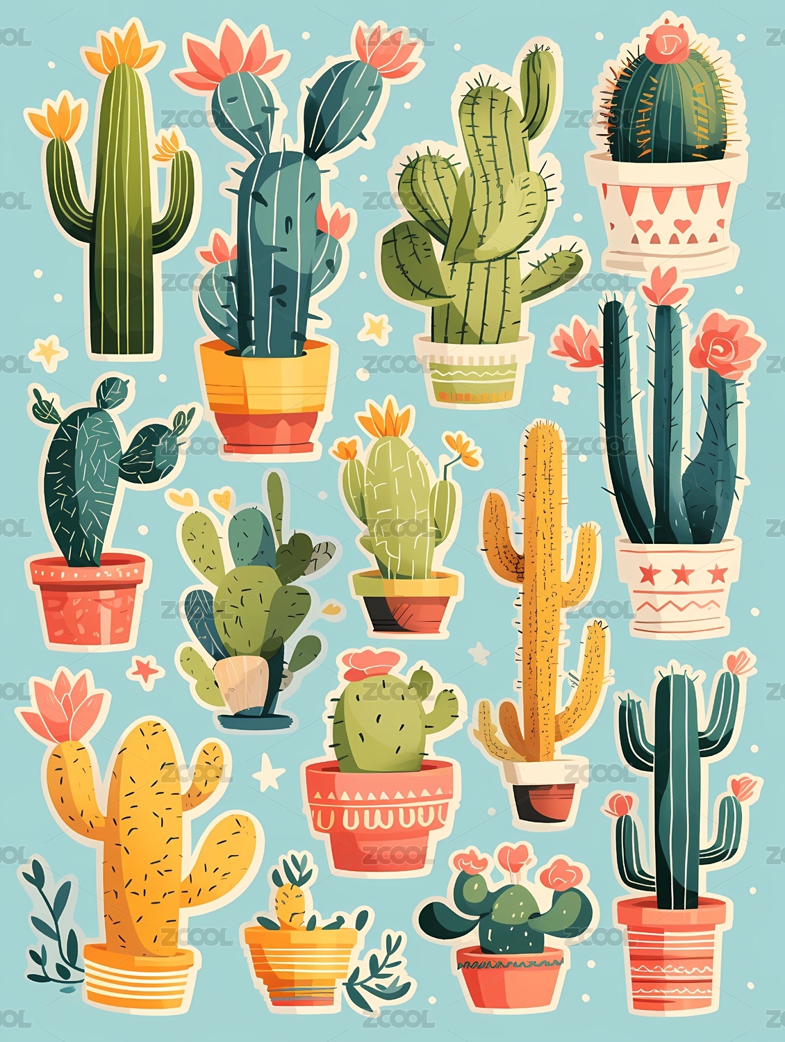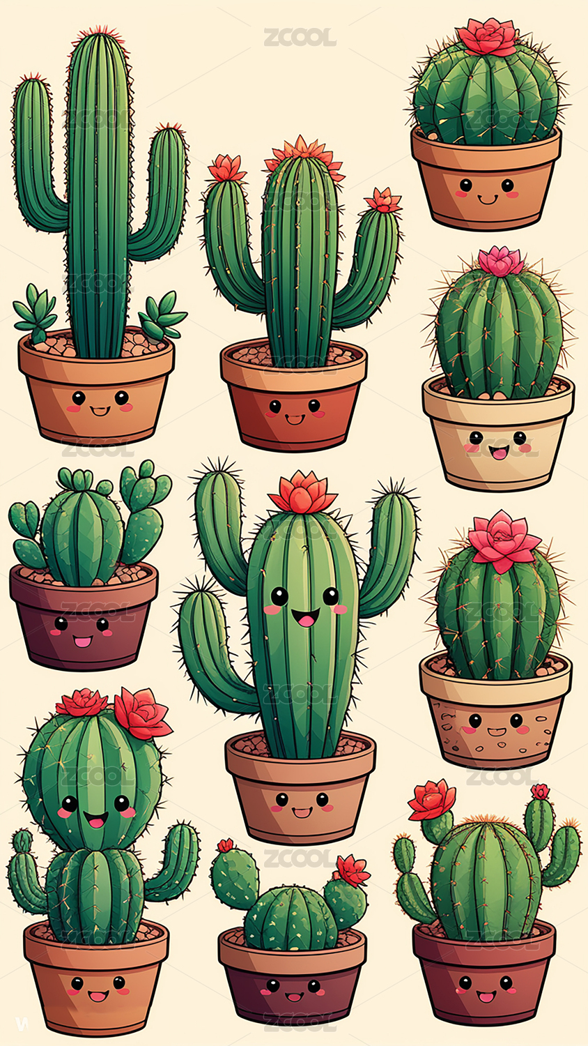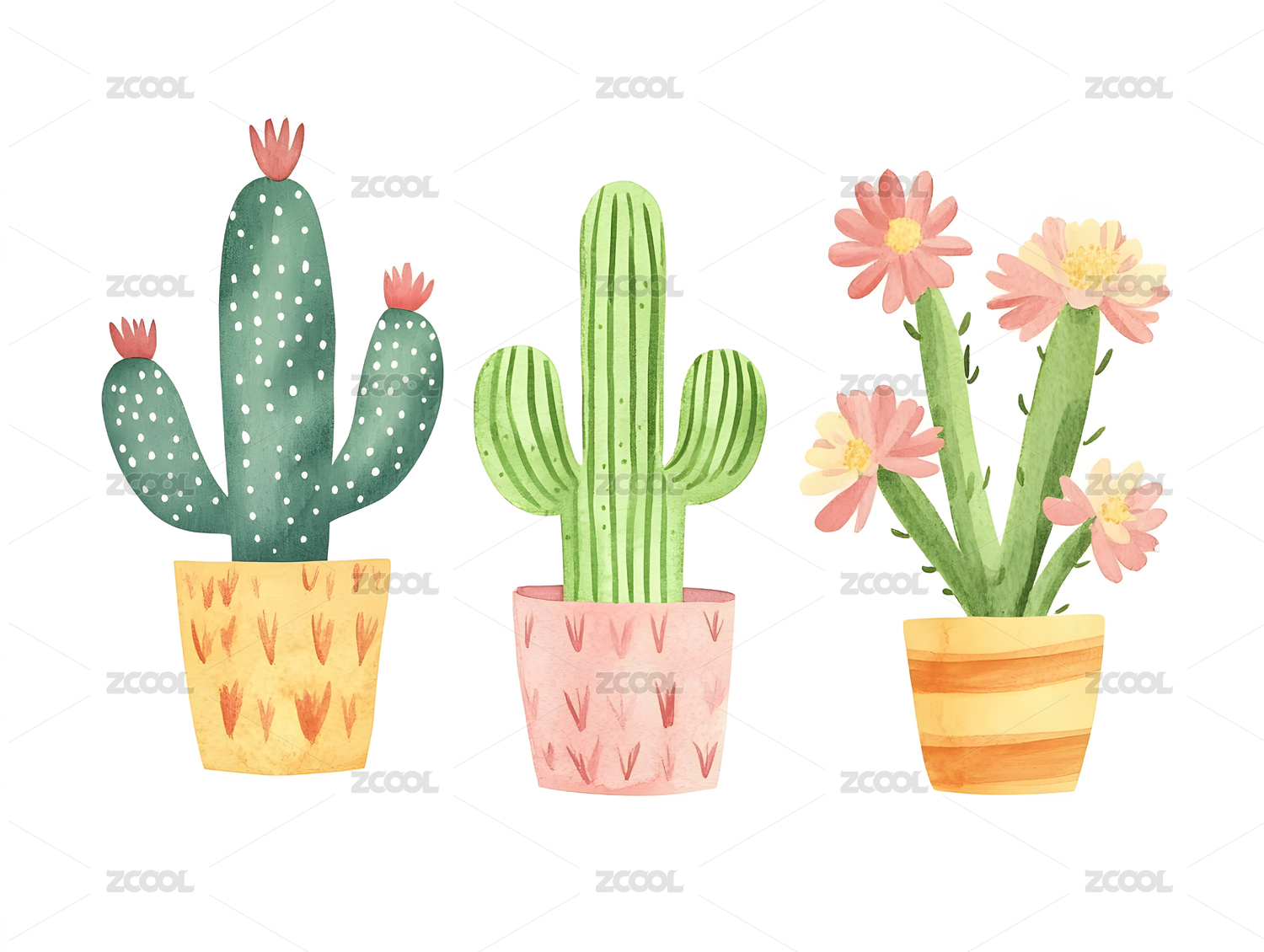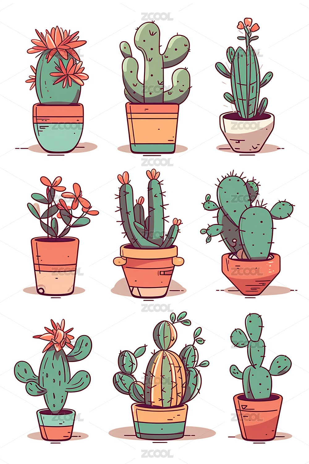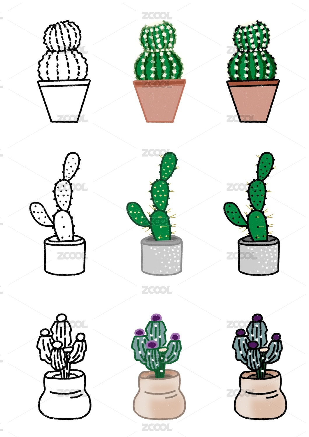 仙人掌,多肉,盆栽,插画,植物,卡通,装饰,卡通植物,盆栽插画,可爱