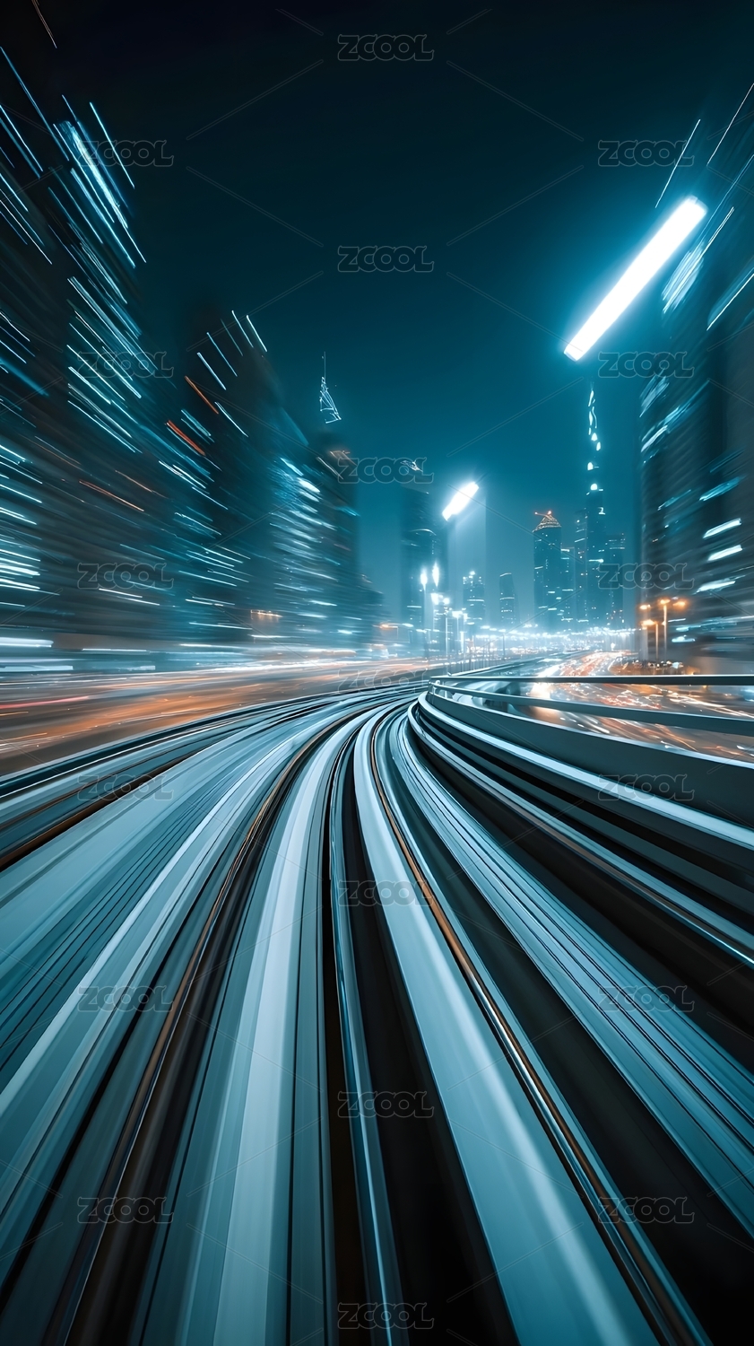 城市夜景光轨疾驰 速度与激情 科幻未来