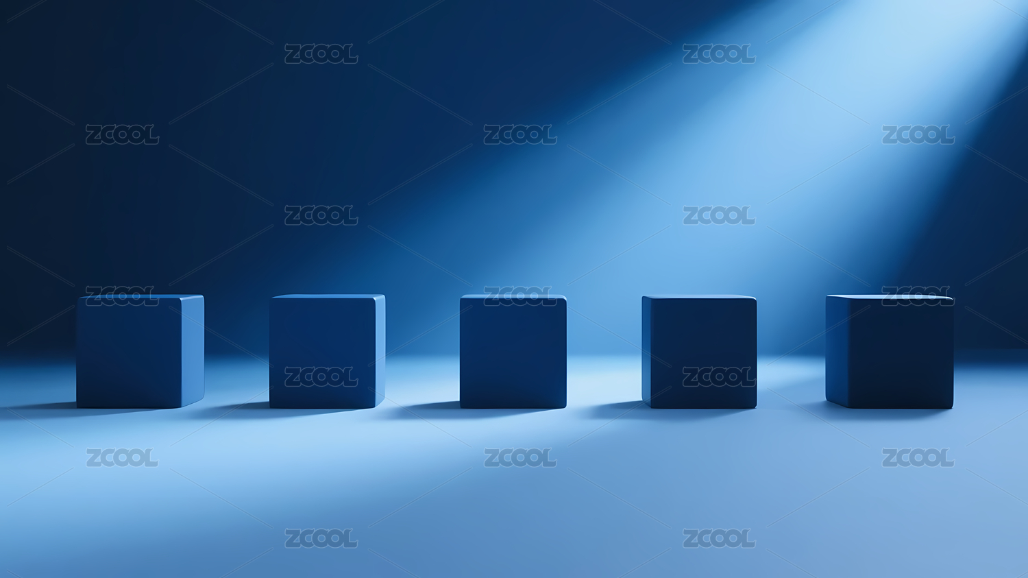 光影照射蓝色立方体