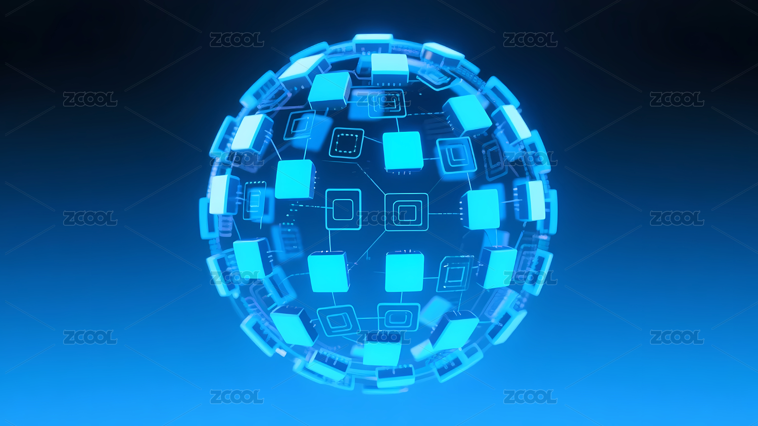 蓝色网格球体的未来科技感