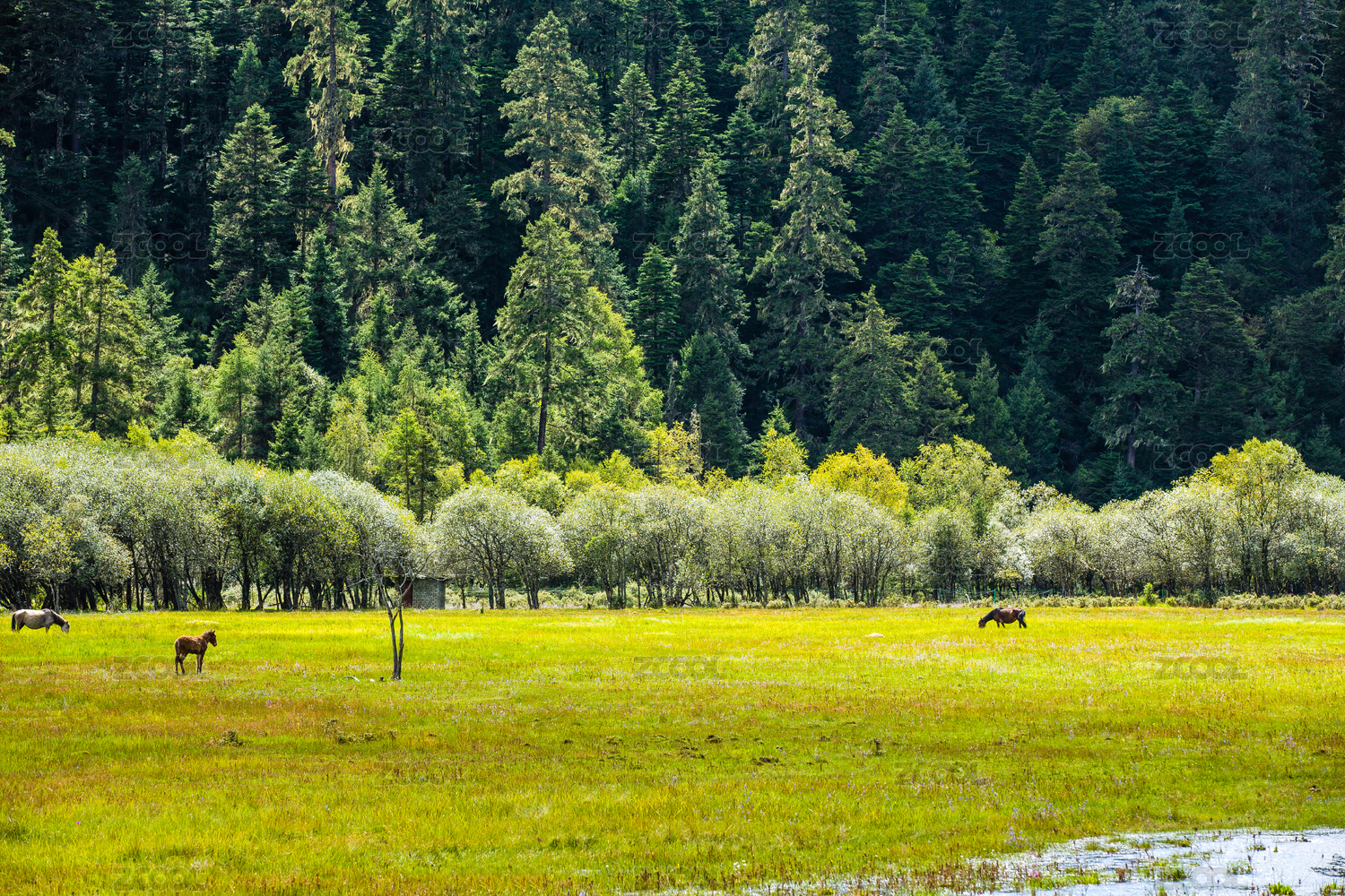 秋季中国云南迪庆香格里拉普达措国家公园碧塔海牧场