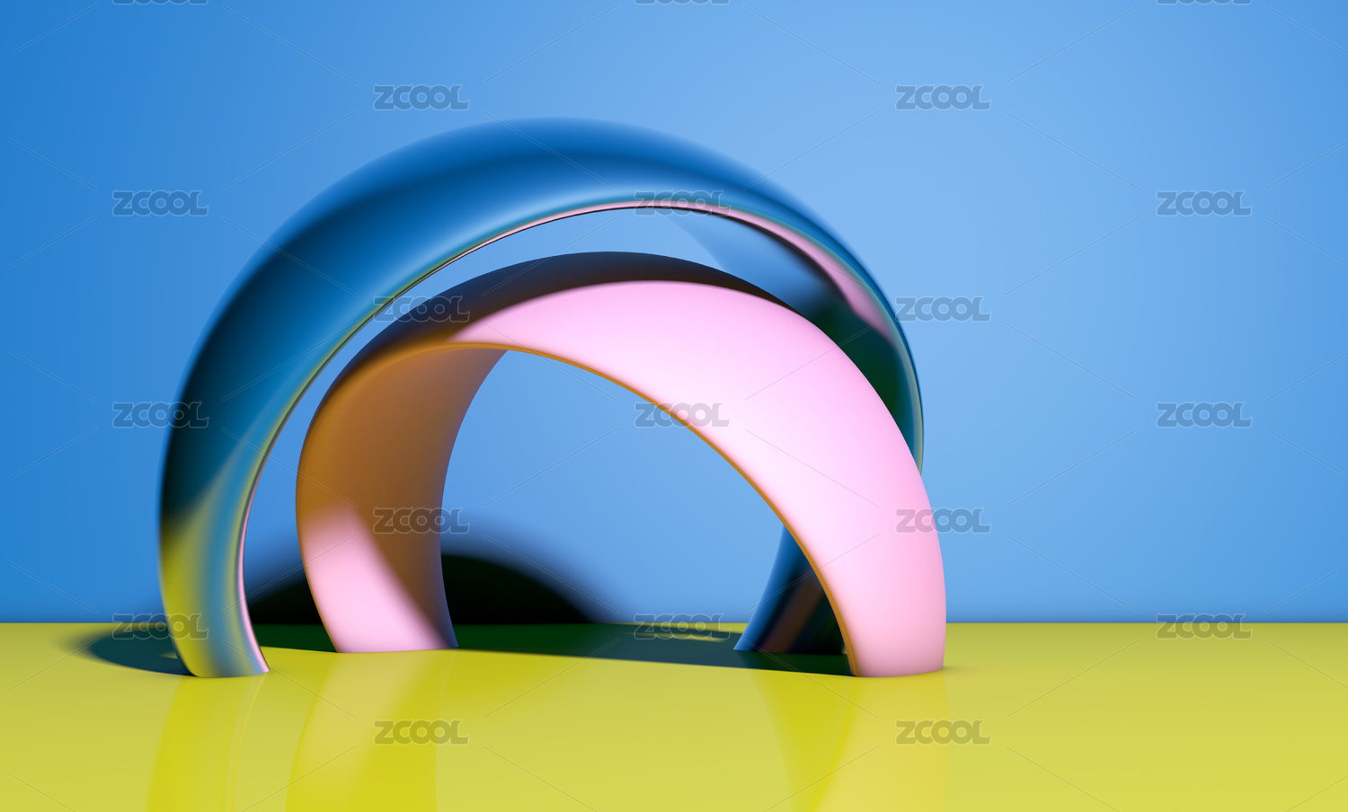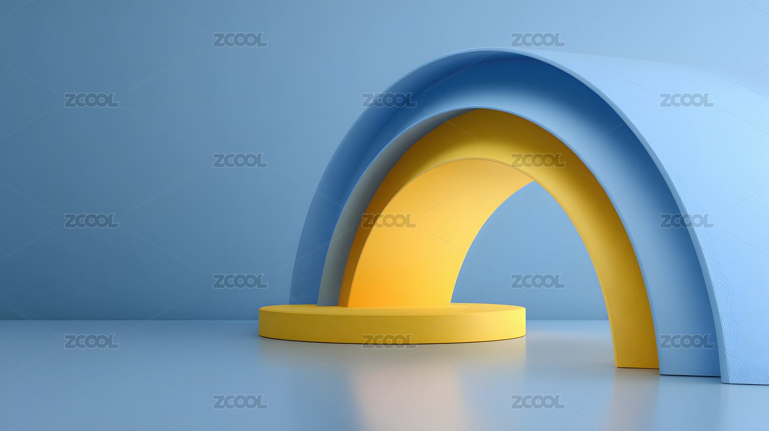 蓝色弧形拱门与渐变天空