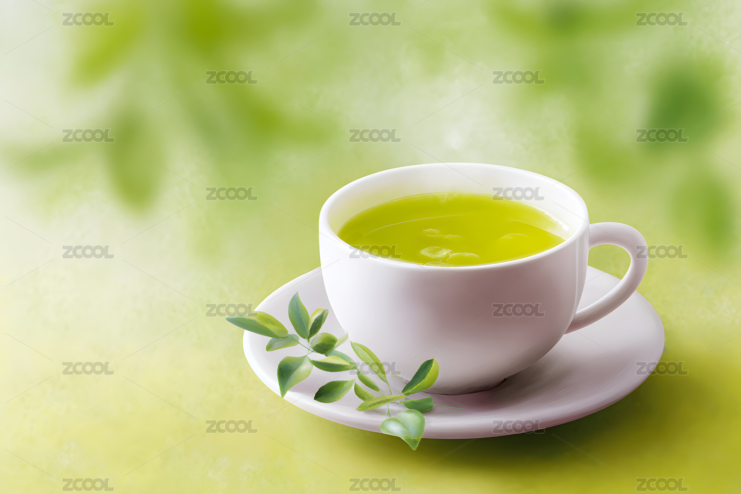 清新绿茶背景插图