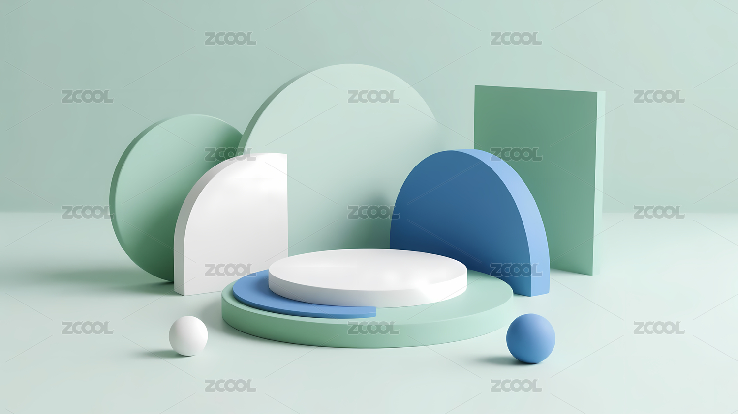 圆形,球体,米色,现代,圆柱,渐变,绿色,艺术,几何,简约