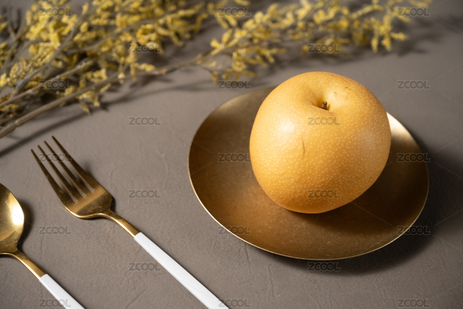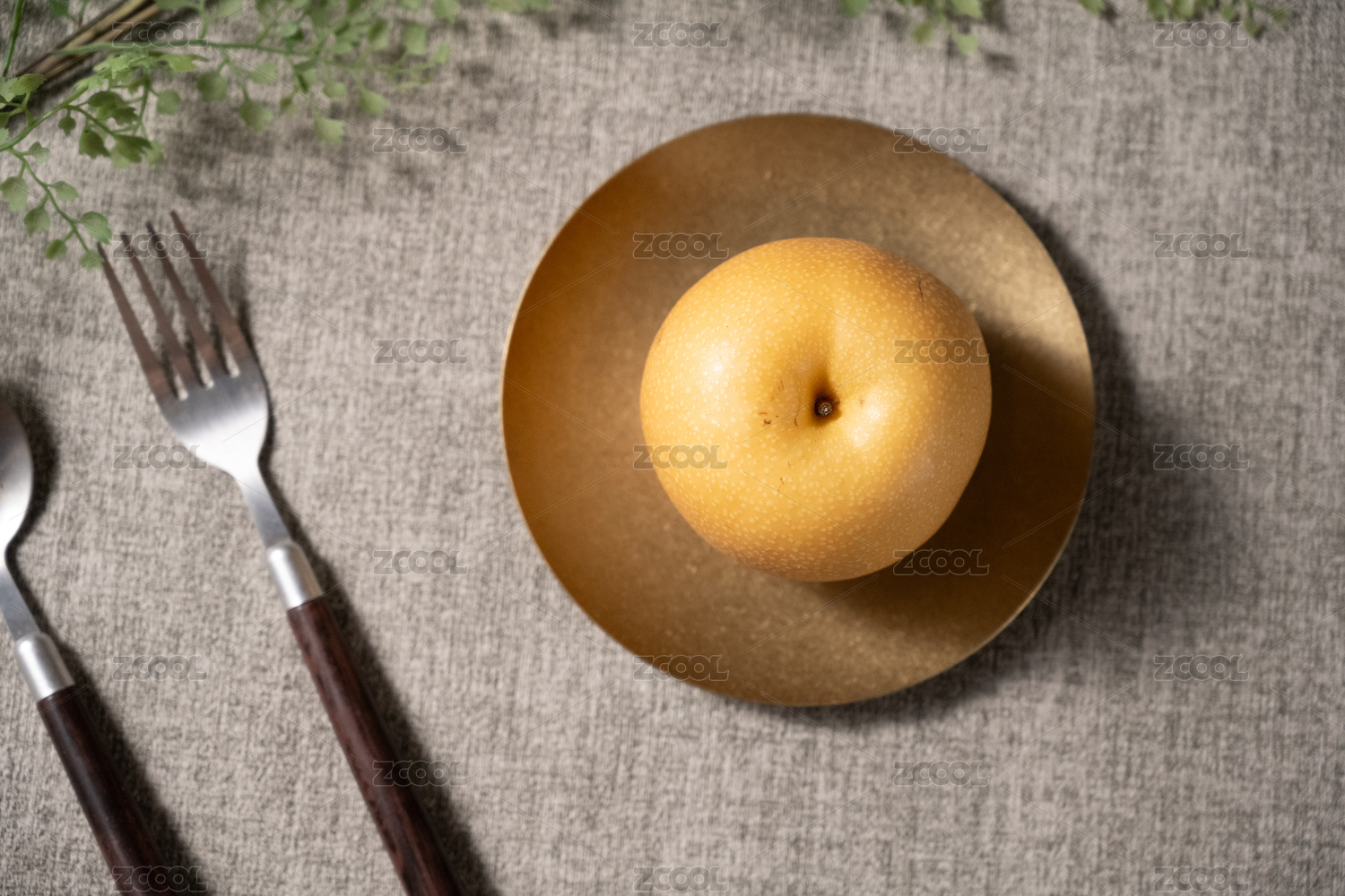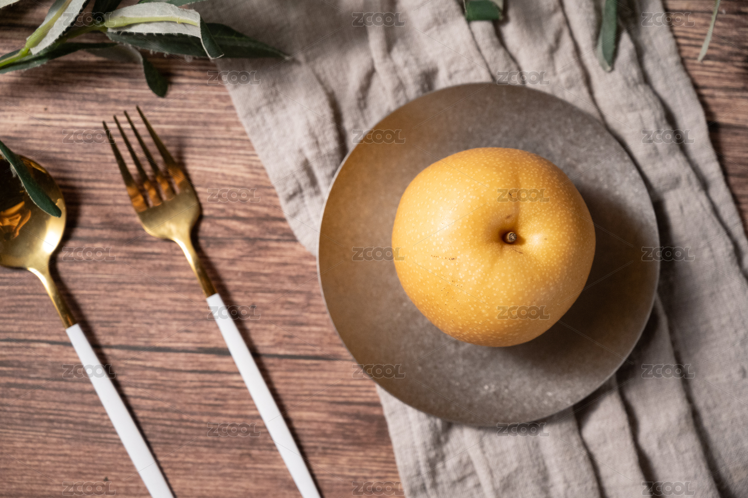 桌面上的盘子里的美味可口的新鲜秋梨
