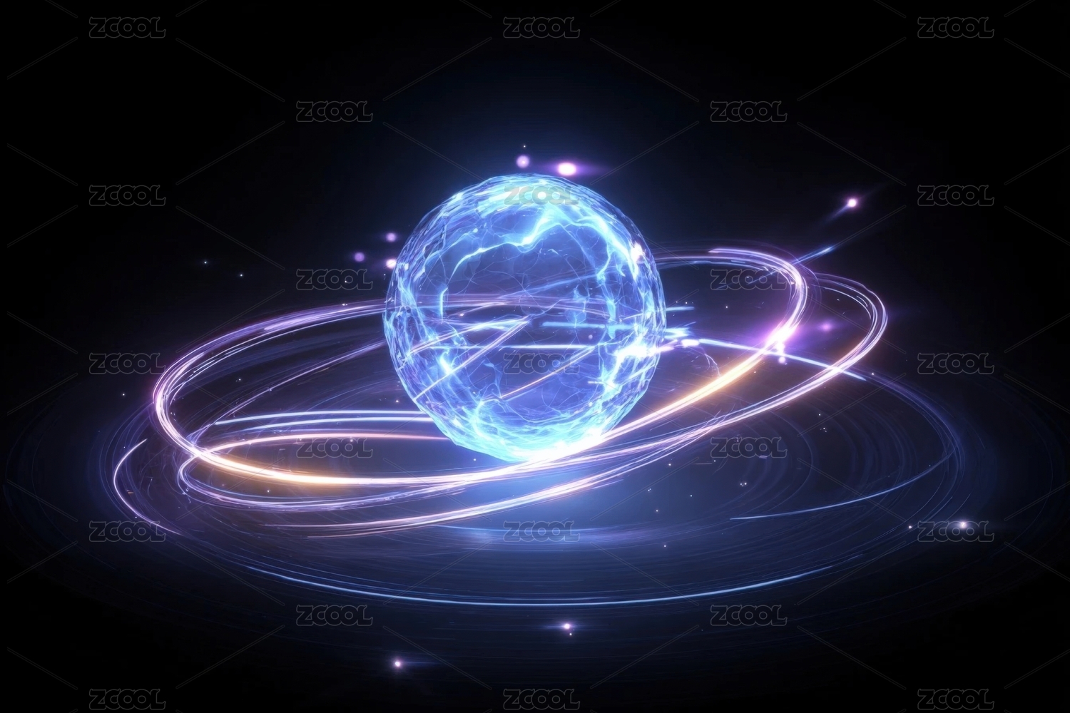 高科技,神秘氛围,科幻,发光球体,能量环,未来感,数据网络,宇宙星系,黑暗背景,科技装置