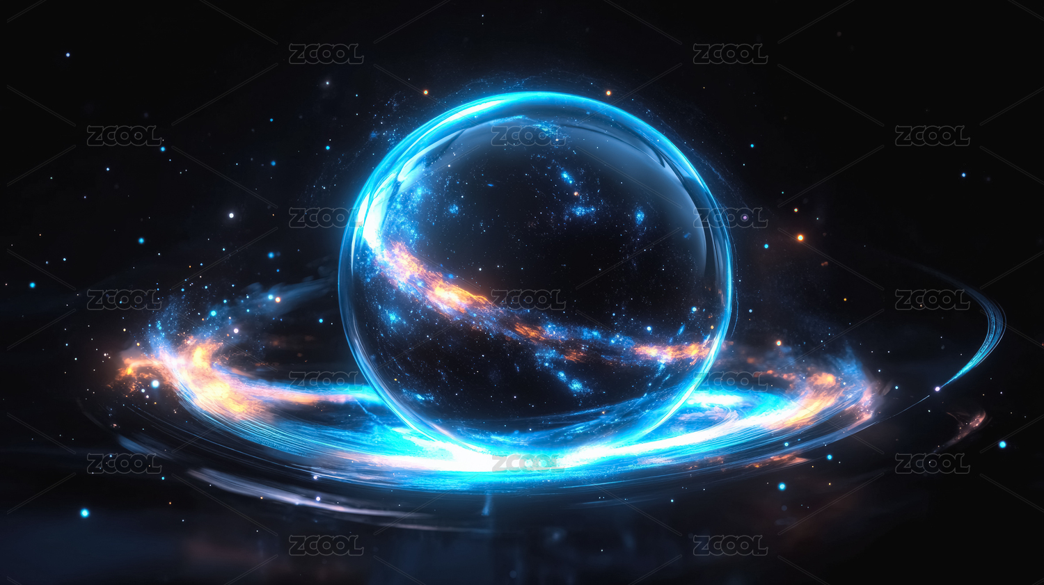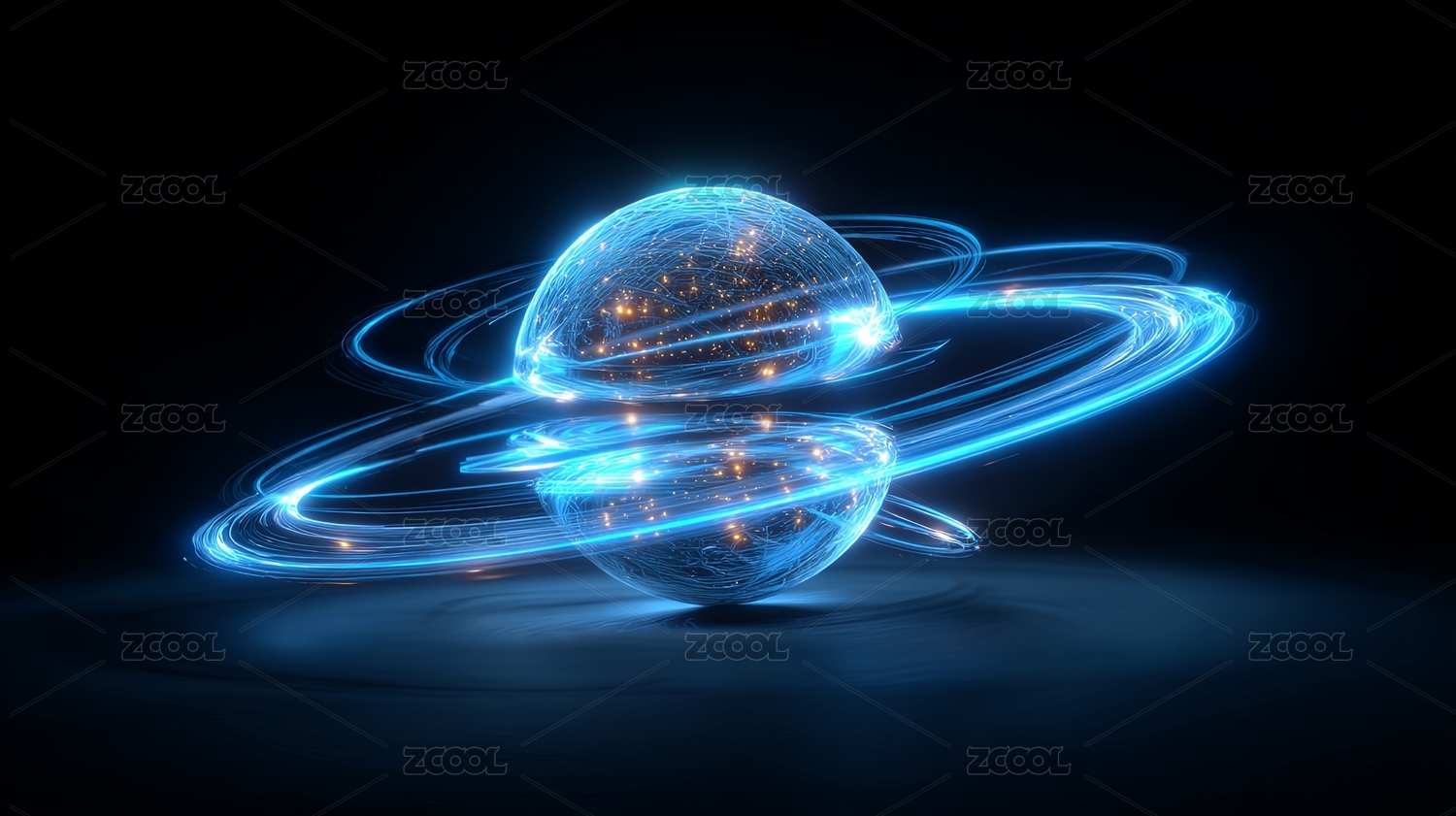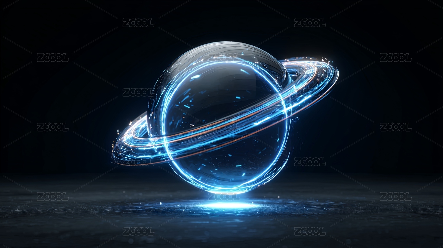 科幻风格发光球体与能量环