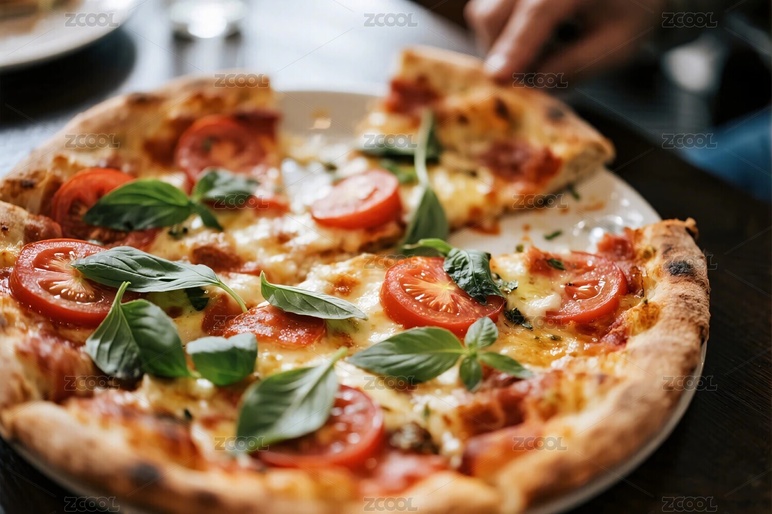 一片刚被拿起的火腿披萨