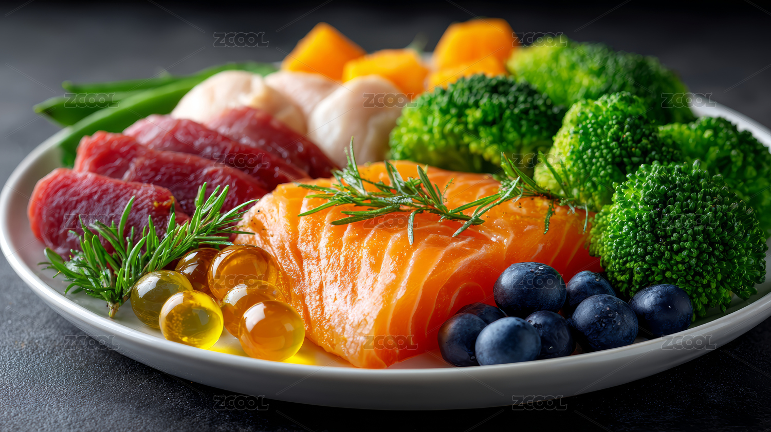 食材,拼盘,蔬菜,肉类,海鲜,插画,美食,料理,摆盘,模板