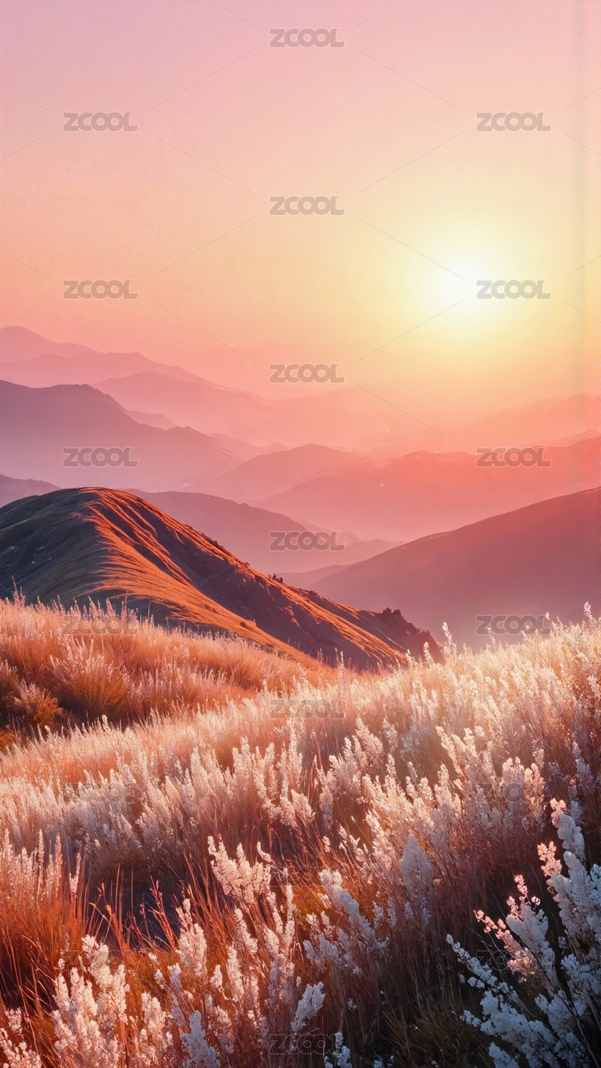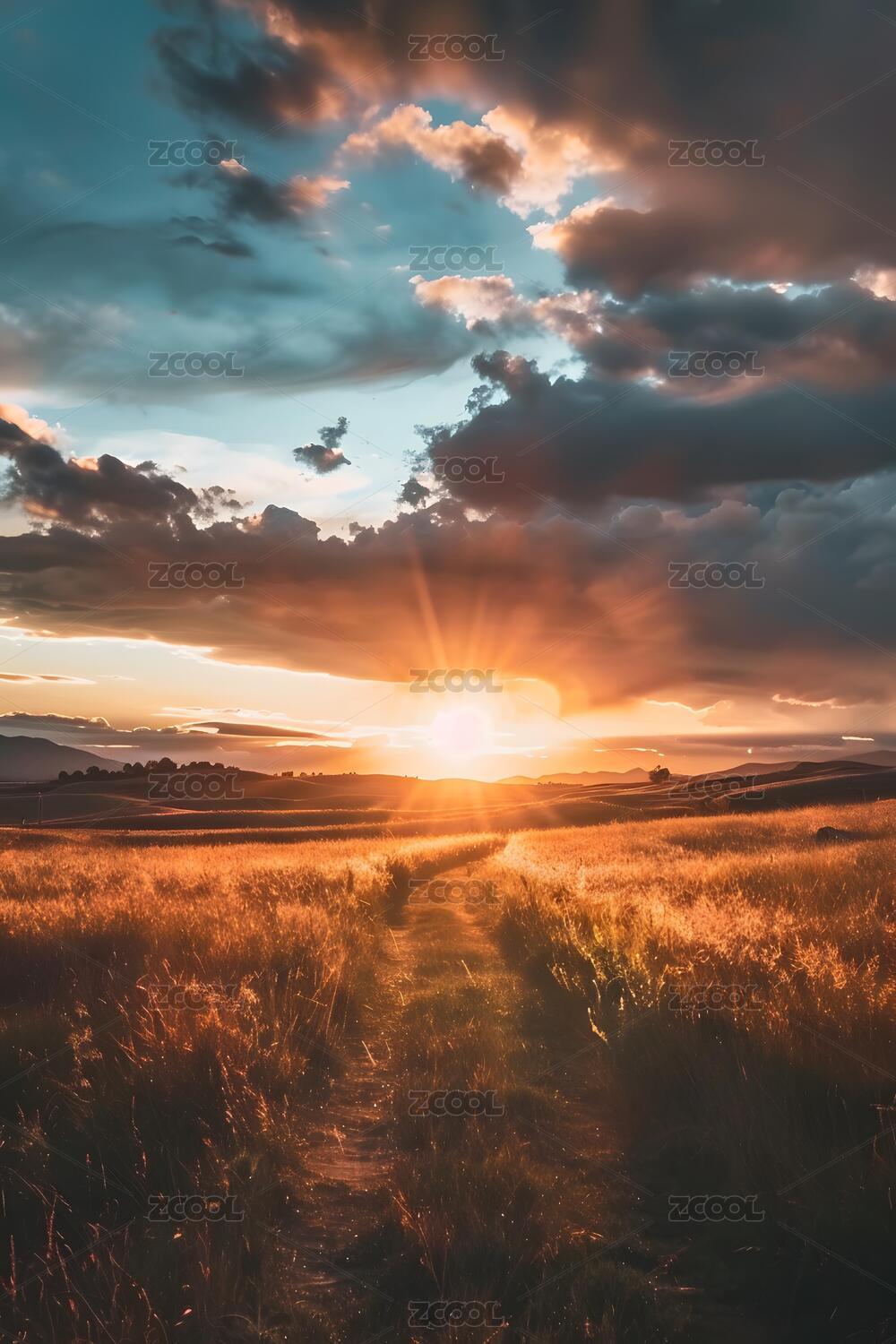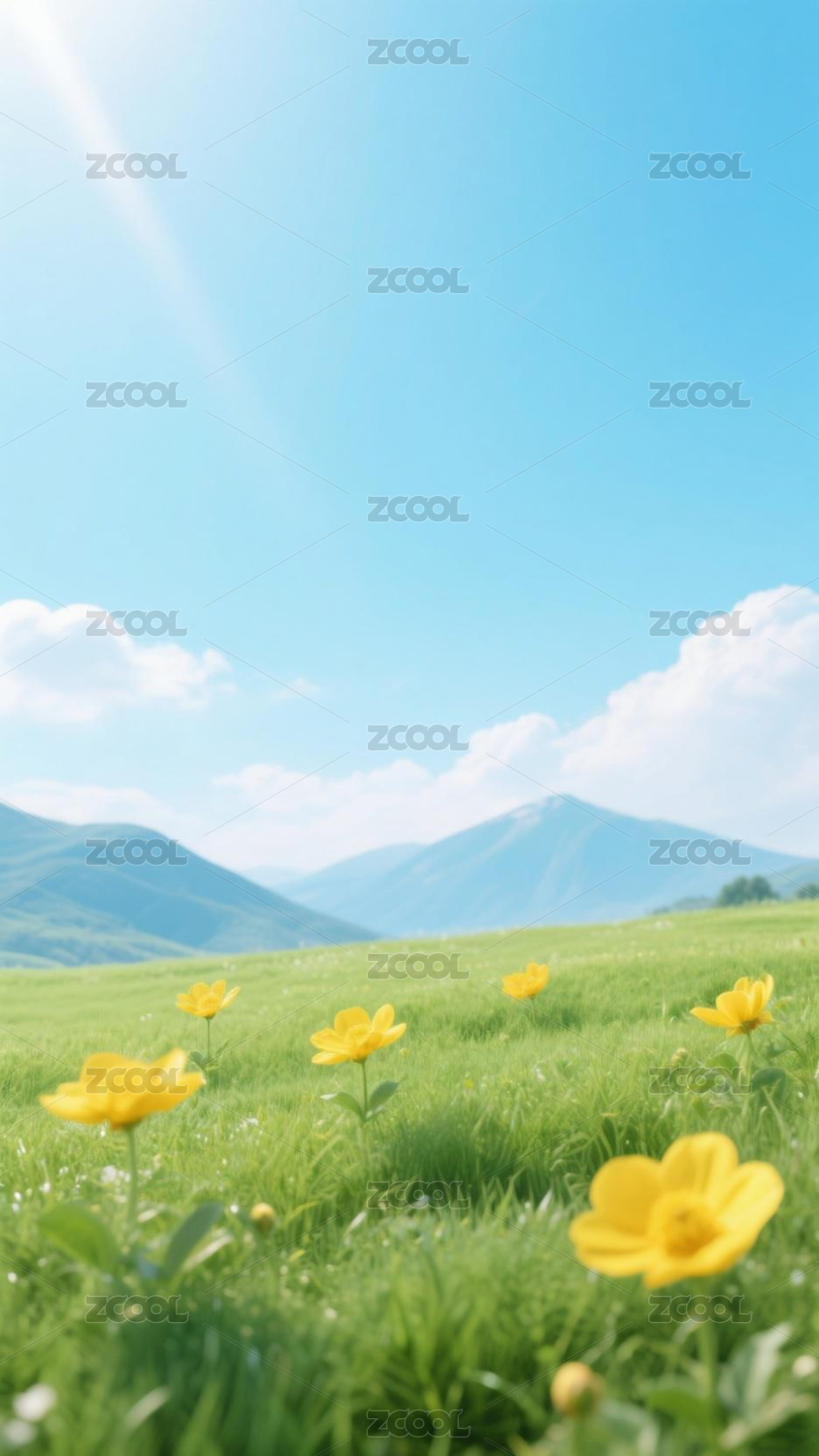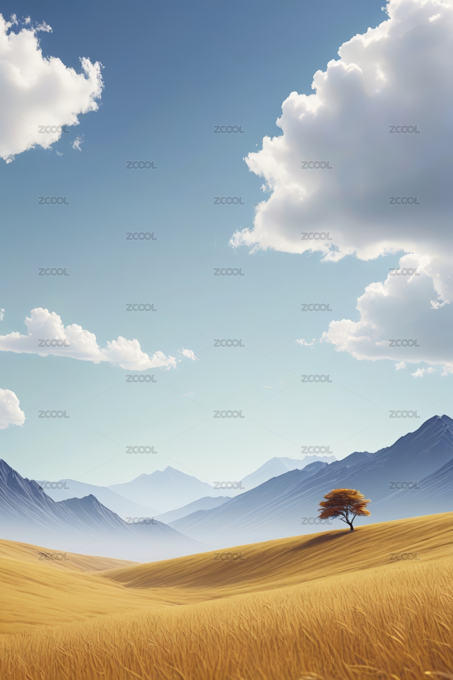 旷野,阳光,黄叶,蓝天,白云,山脉,秋景,自然风光,插画,矢量