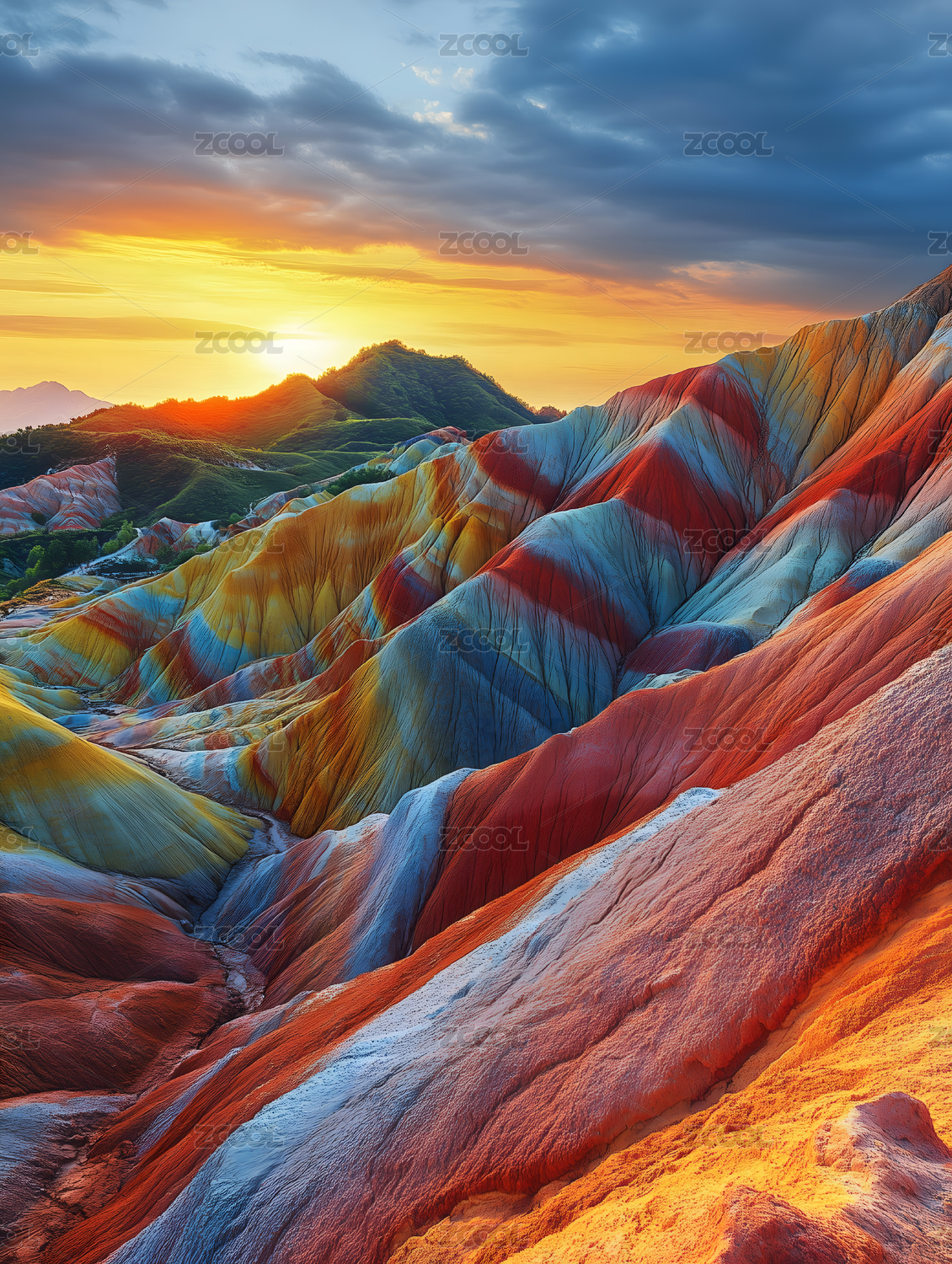 西部甘肃张掖七彩丹霞地貌奇观