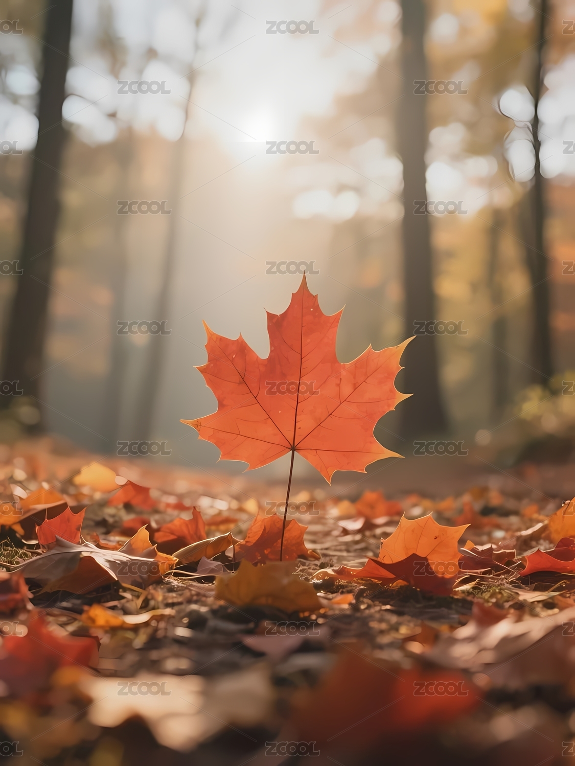 枫叶,阳光,秋日,地面,落叶,蓝天,自然,景色,摄影,真实