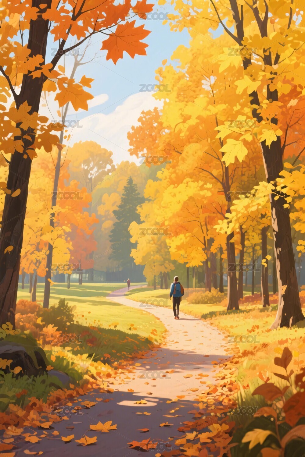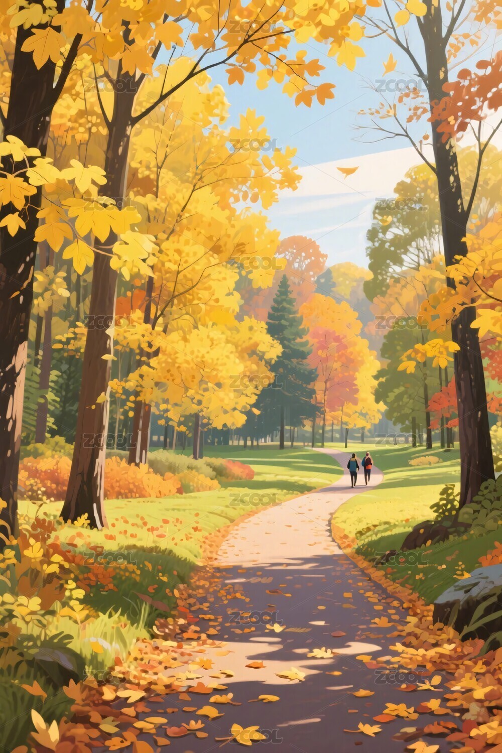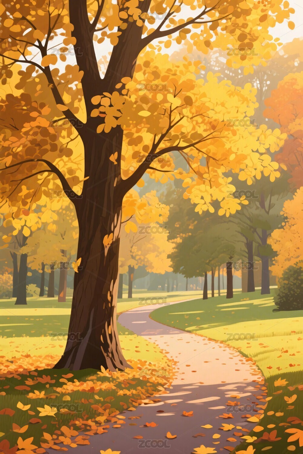 街道,公交站,枫树,落叶,路灯,插画,矢量,风景,秋天,树木