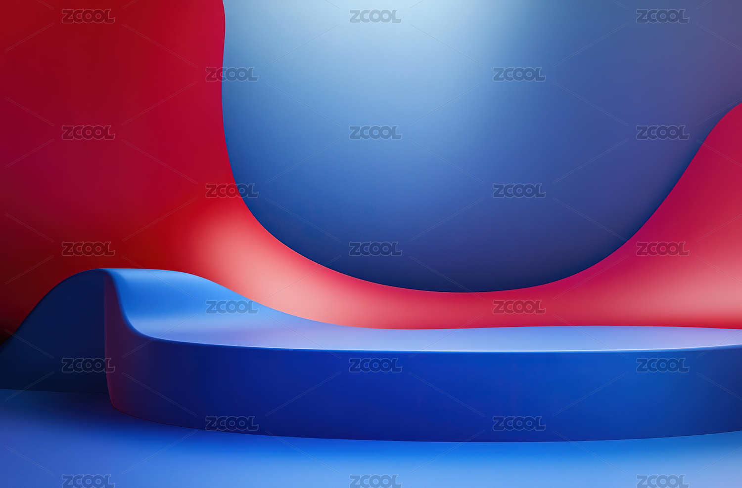 红色丝带在蓝色背景下舞动 营造抽象氛围