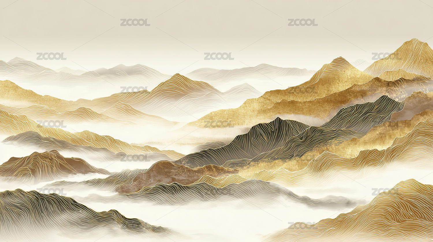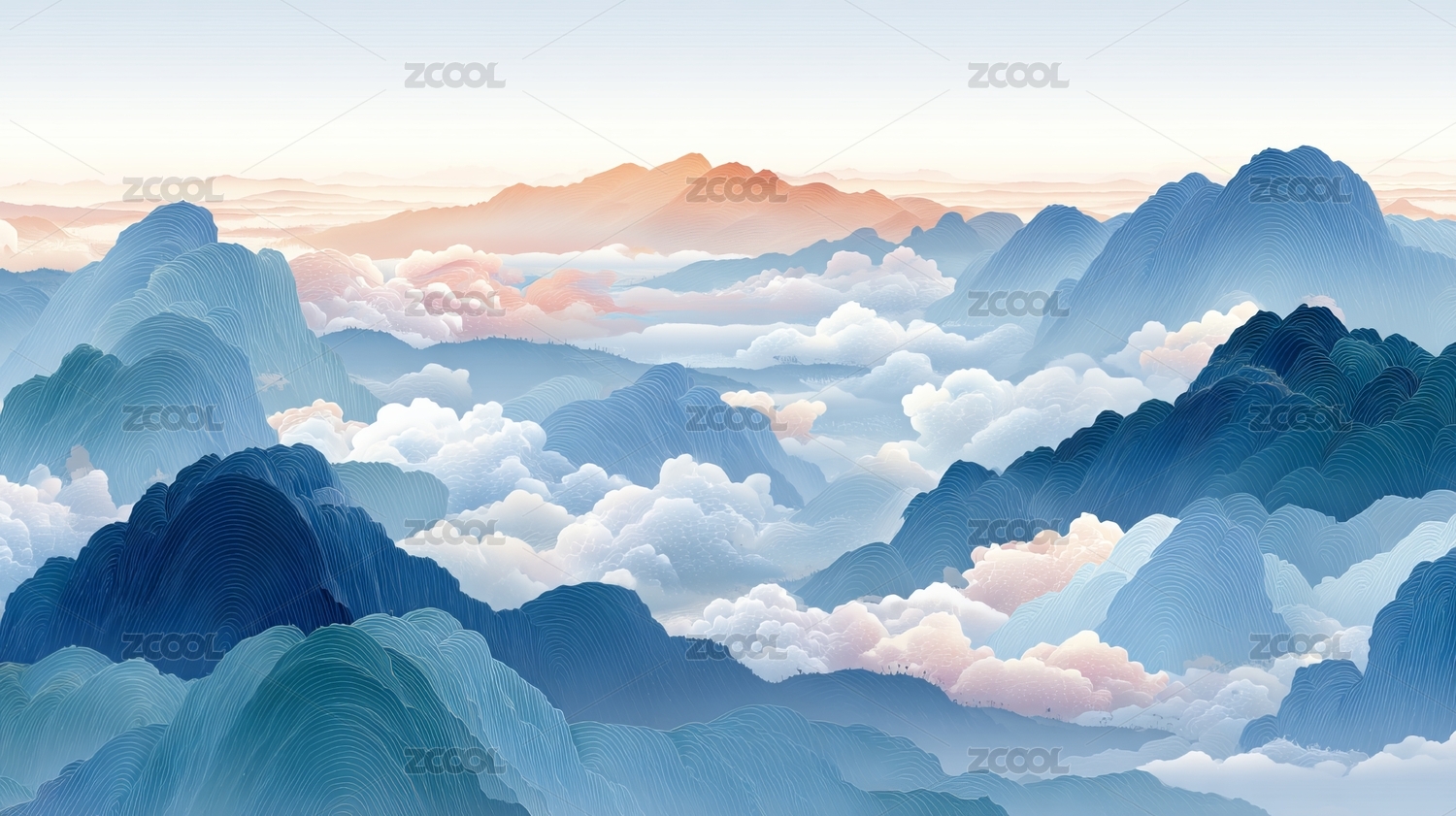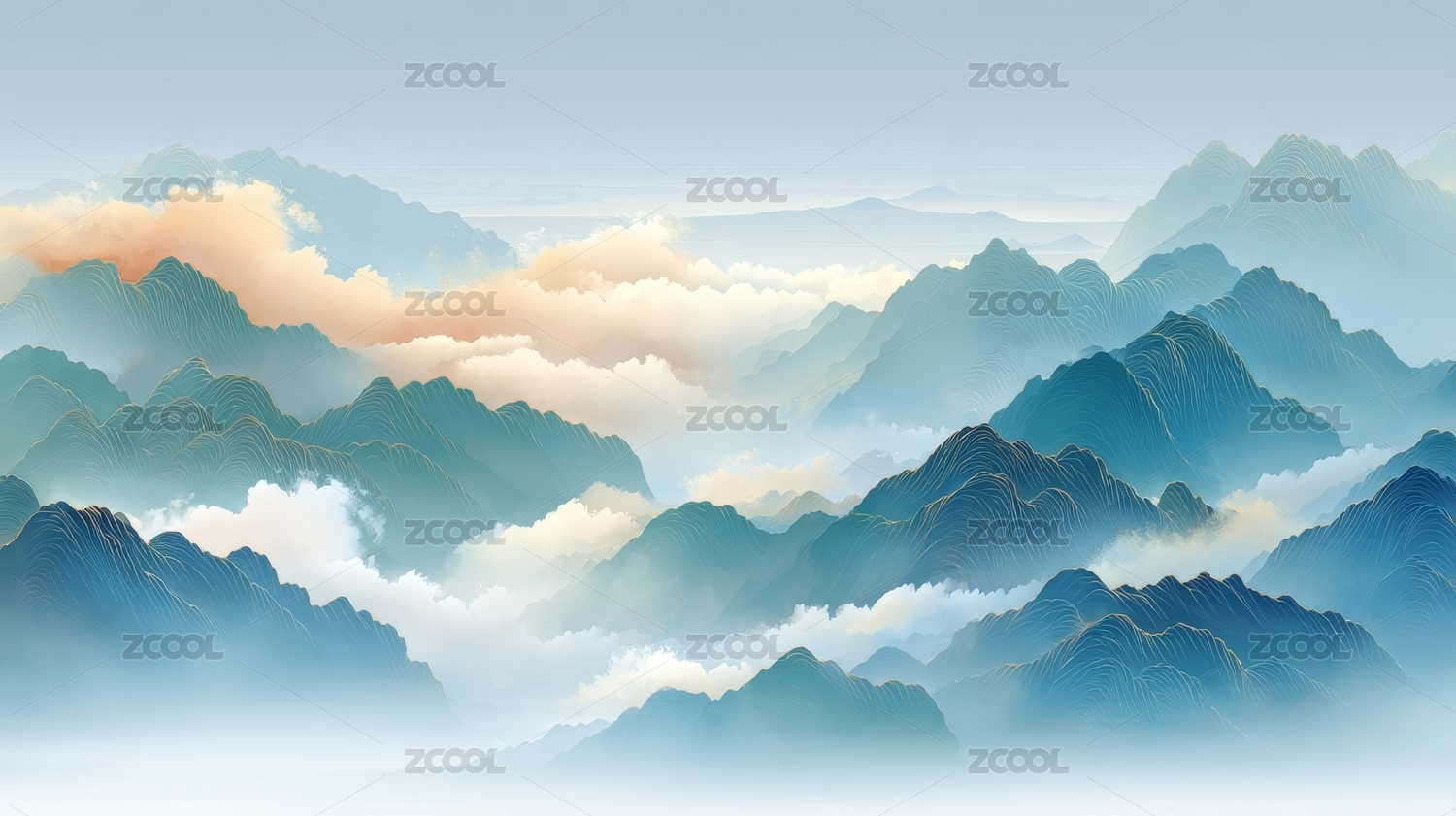 新国风古风国潮青绿山水画水墨传统背景壁纸