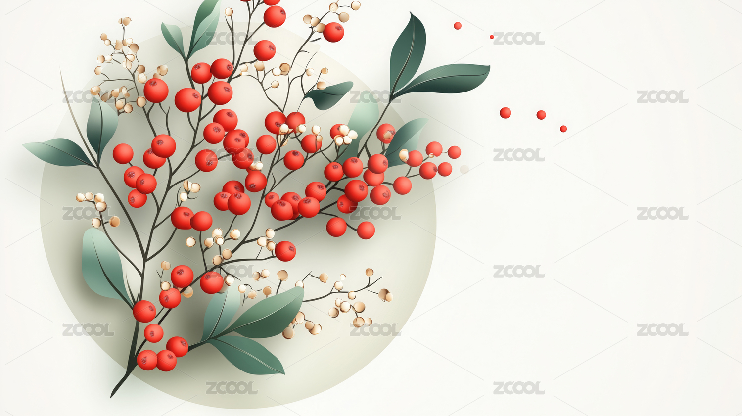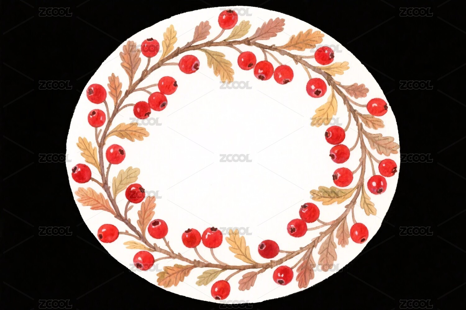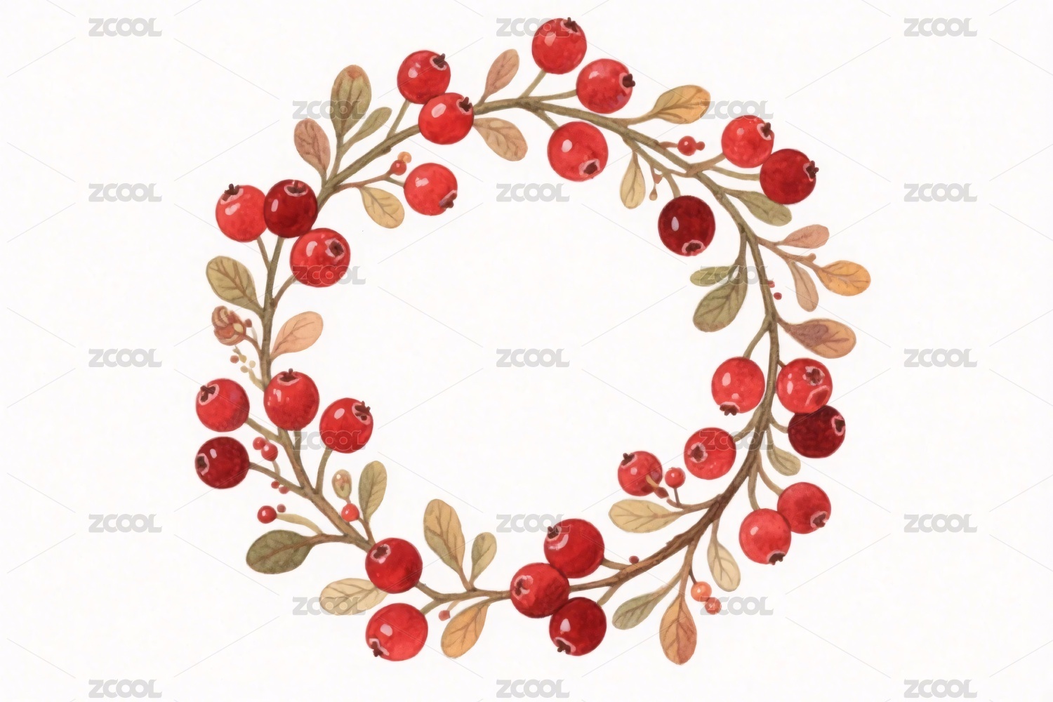浆果,花环,水彩画,叶子,红色,装饰图案,冬季主题,手绘插画,自然植物,环状结构