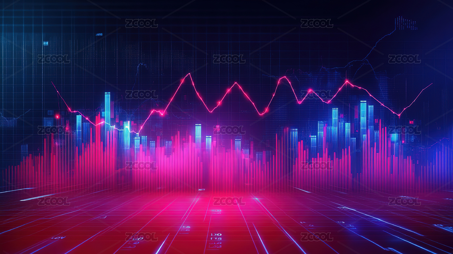 数码世界地图与k线图构建金融曲线图表矢量背景