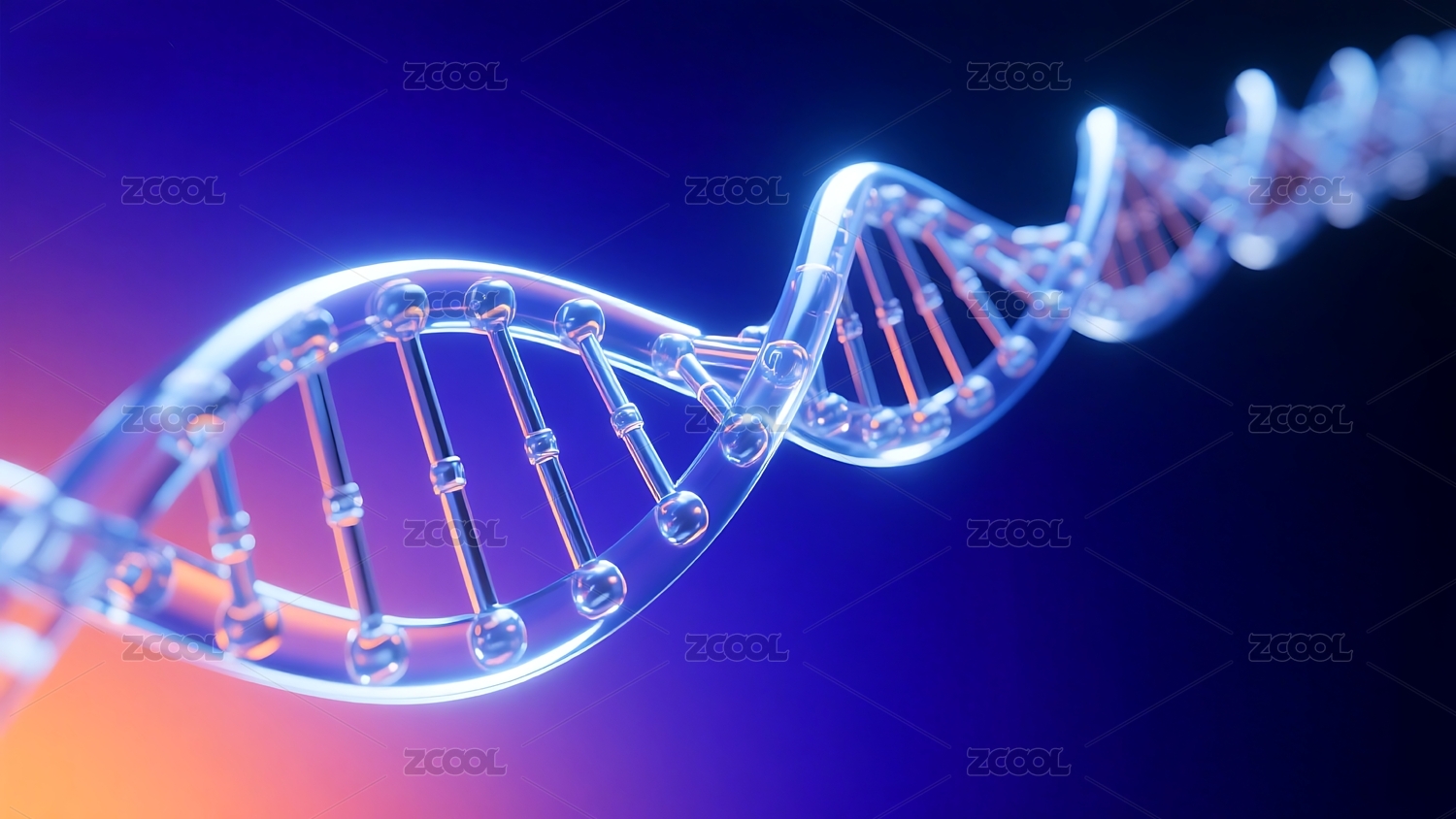 未来感,DNA,双螺旋,分子结构,遗传物质,生物科学,基因研究,透明质感,蓝色调,立体模型