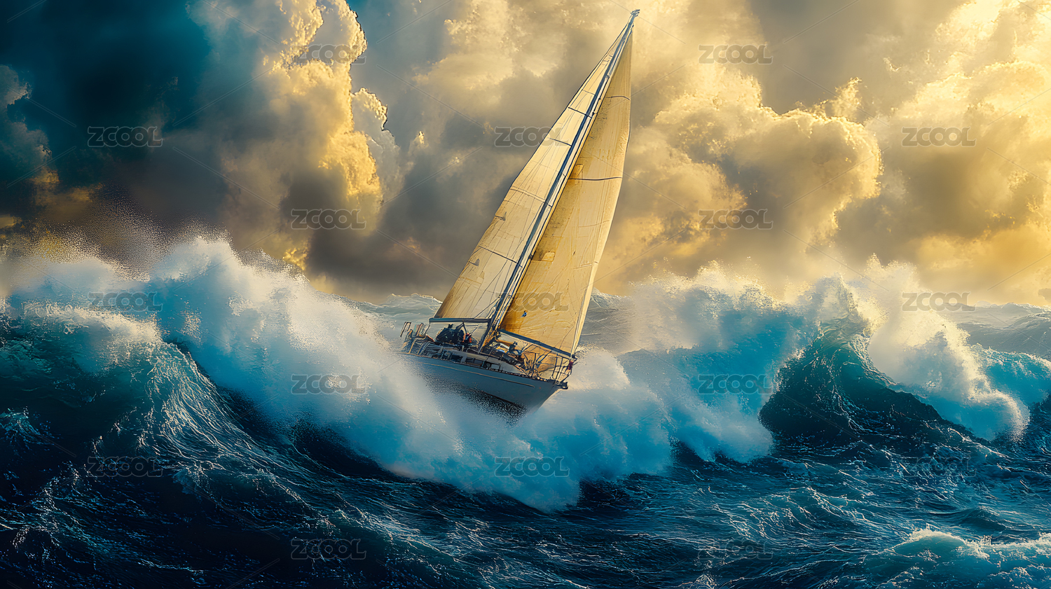 天空,环境,帆船,风暴,海浪,航行,波涛,云层,自然,海洋