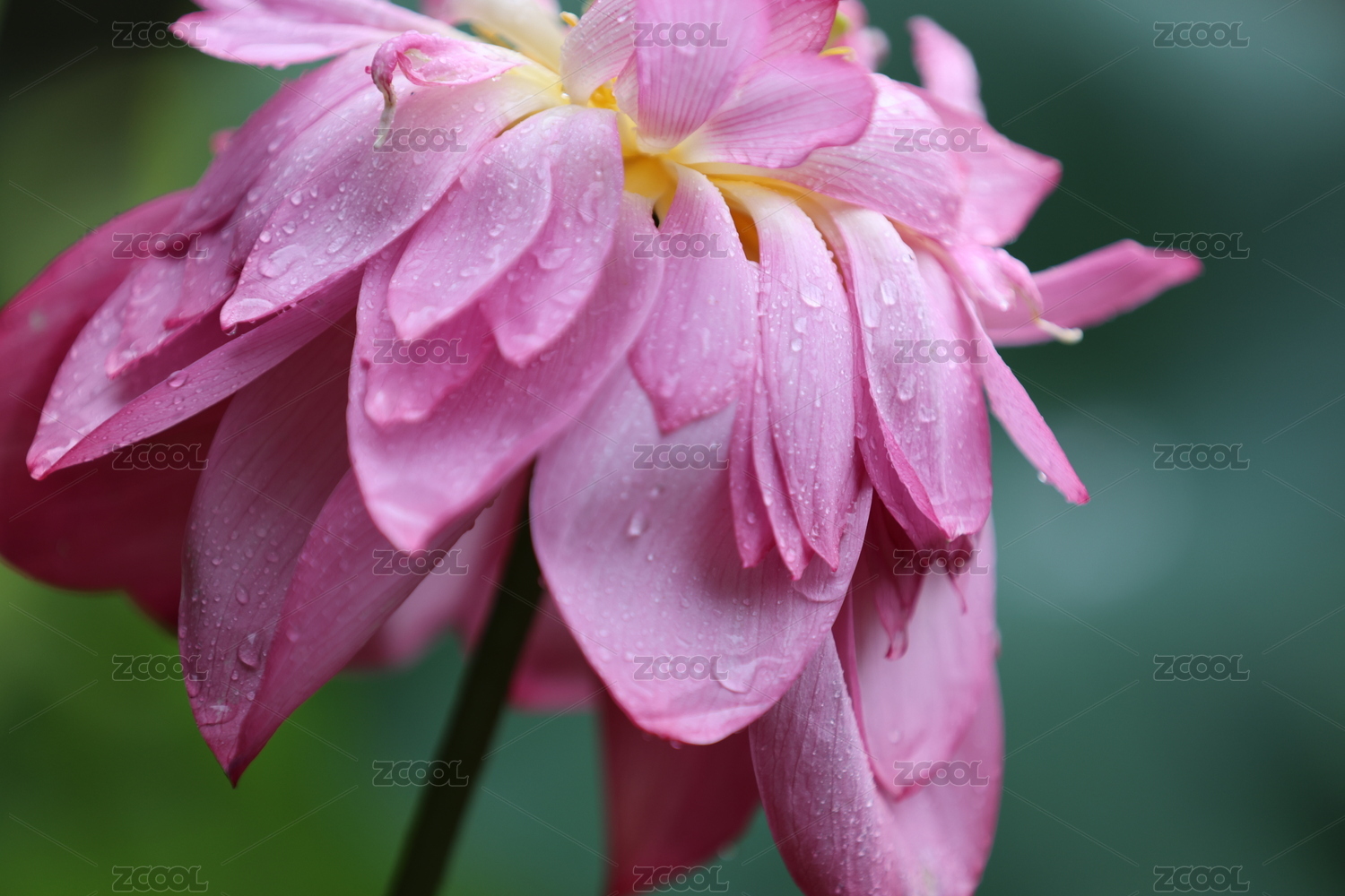 带水珠的重瓣荷花特写