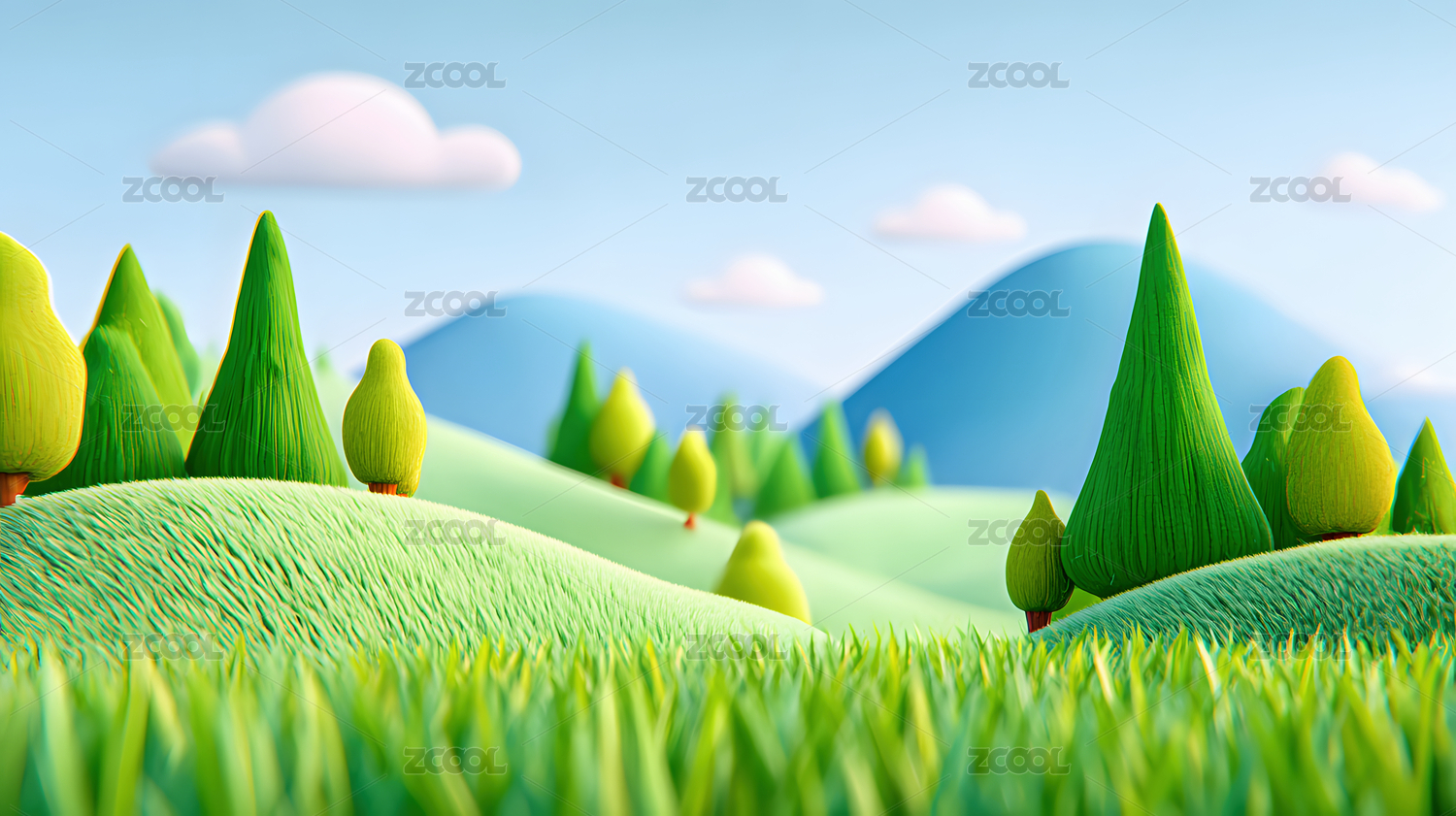 卡通风格的绿色小山丘