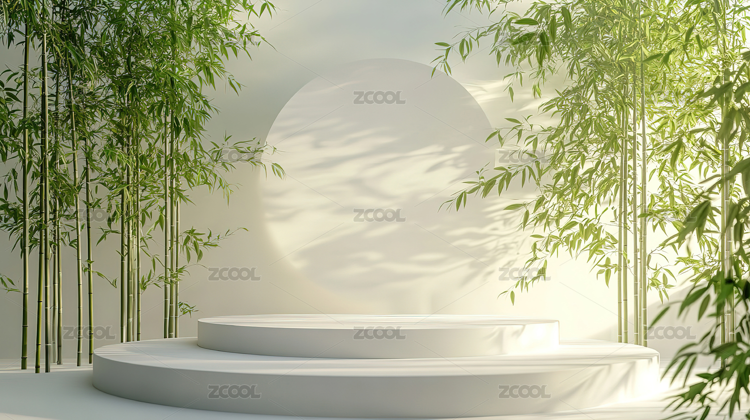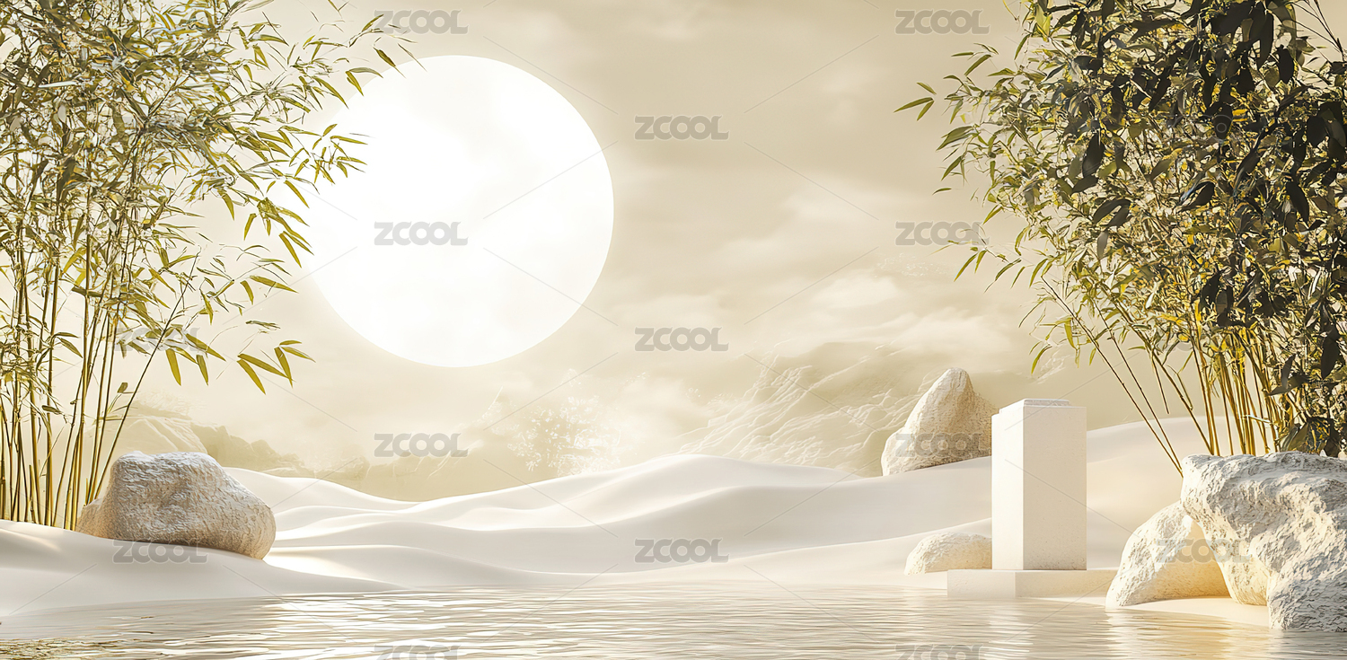 宁静的竹叶在满月的照耀下轻轻摇曳