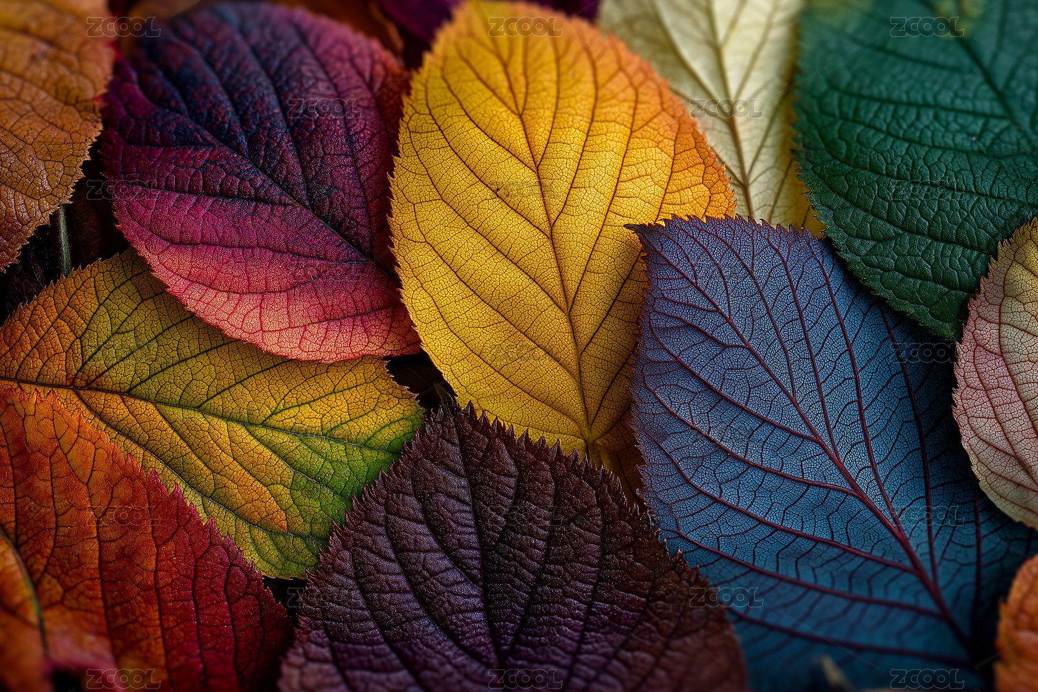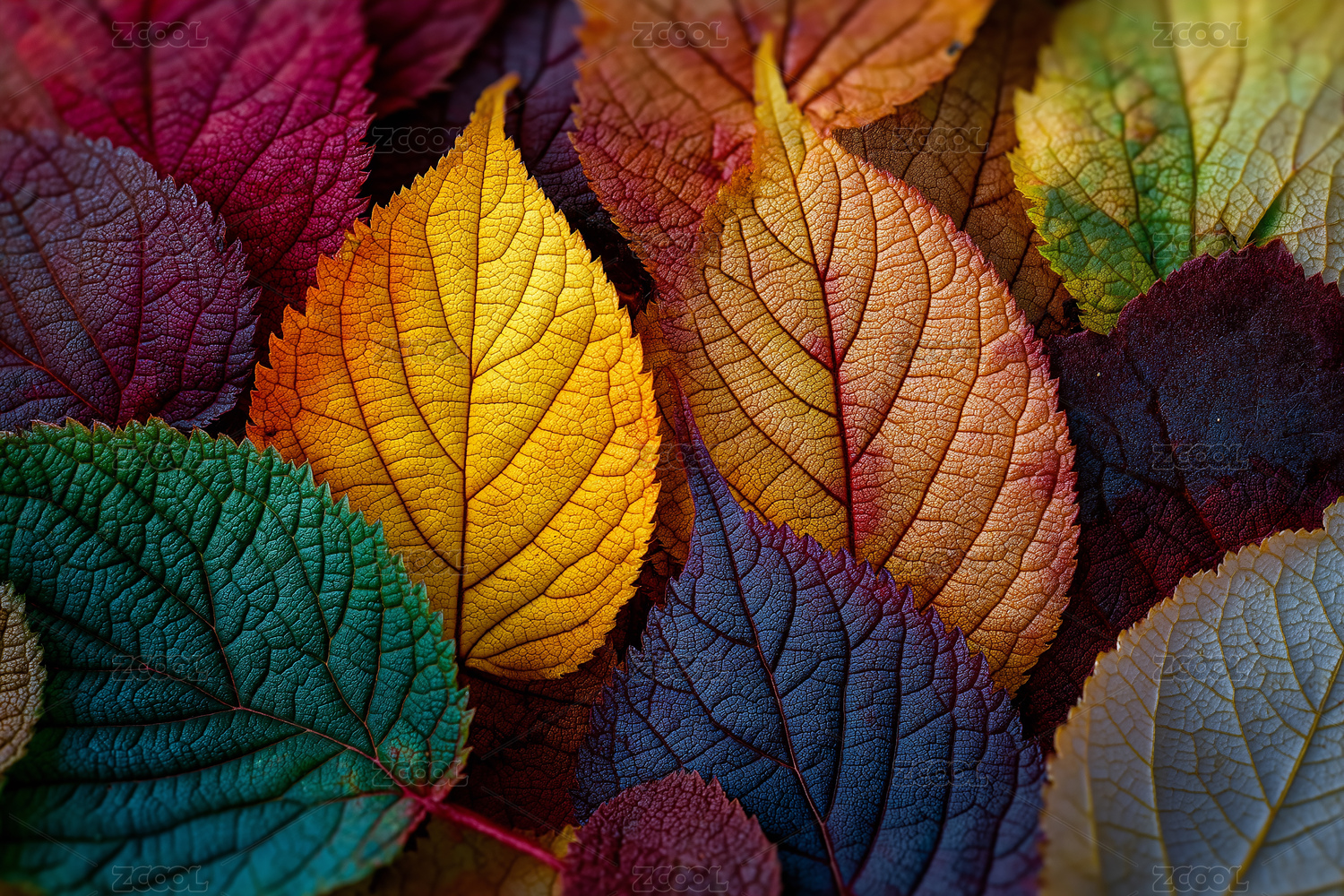多彩秋叶层叠呈现自然美学的装饰视觉