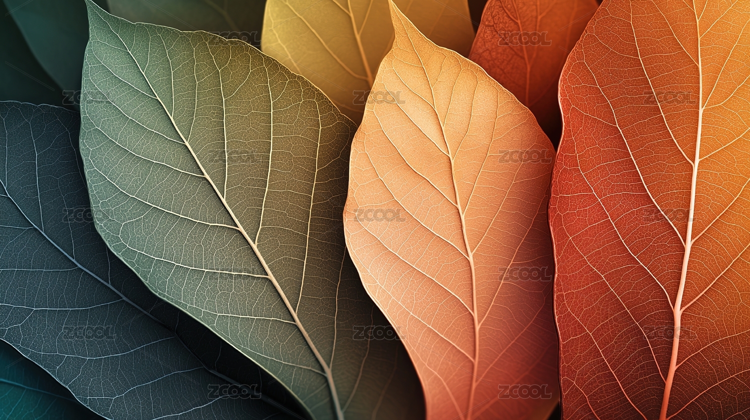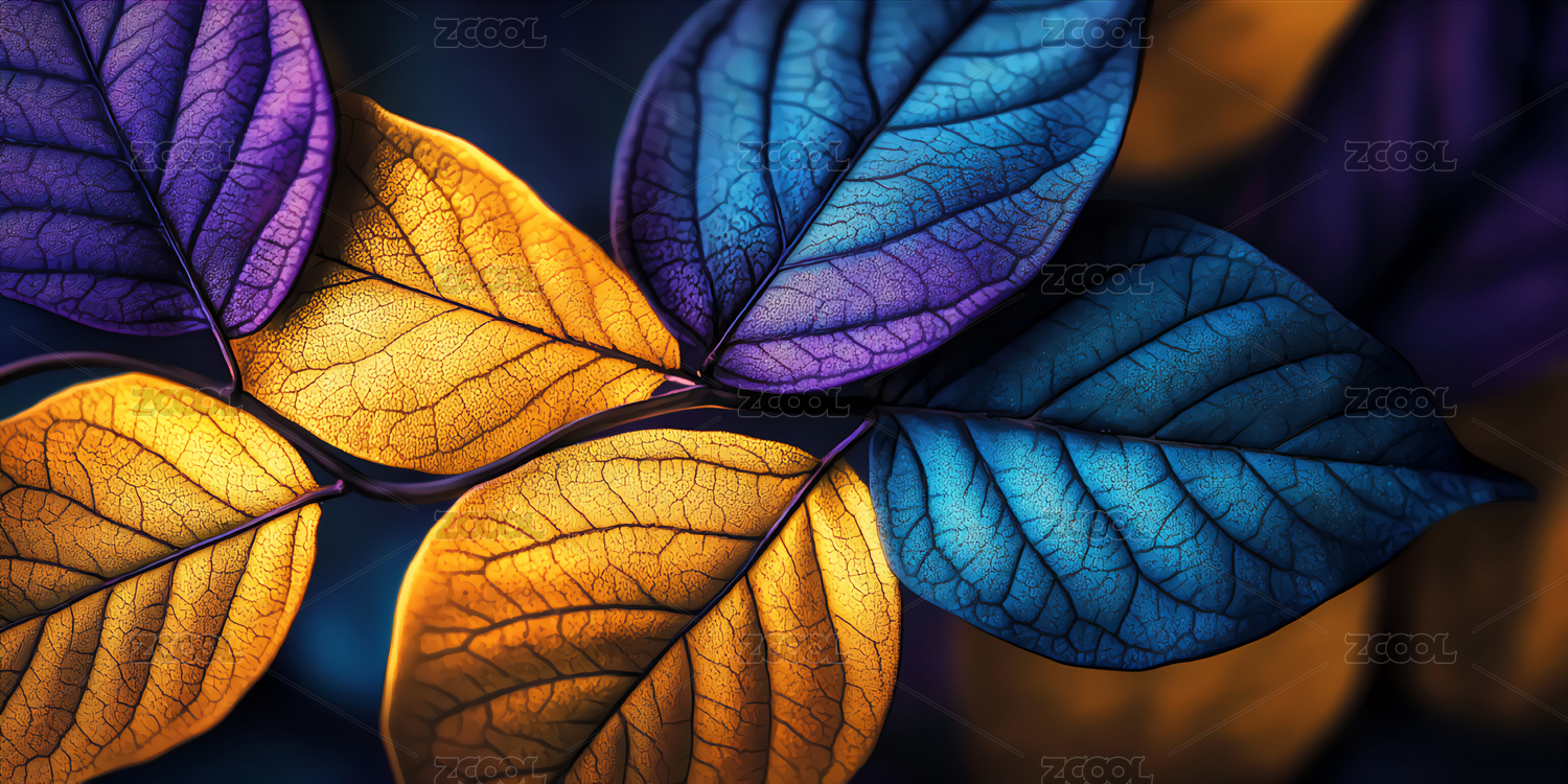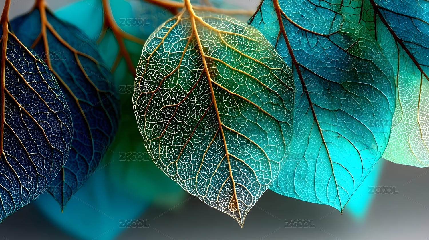 梦幻蓝绿叶脉特写