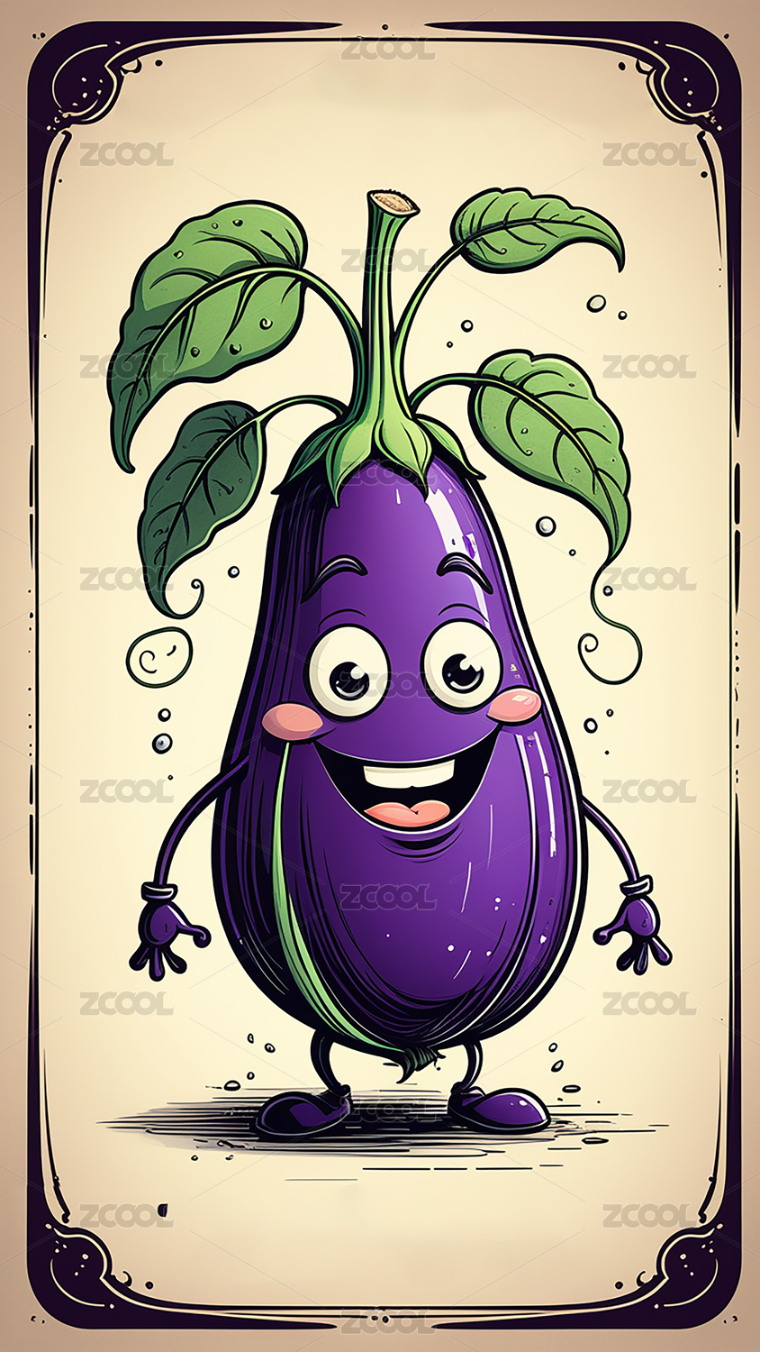 茄子,卡通,可爱,形象,表情,紫色,绿色,健康,营养,笑脸