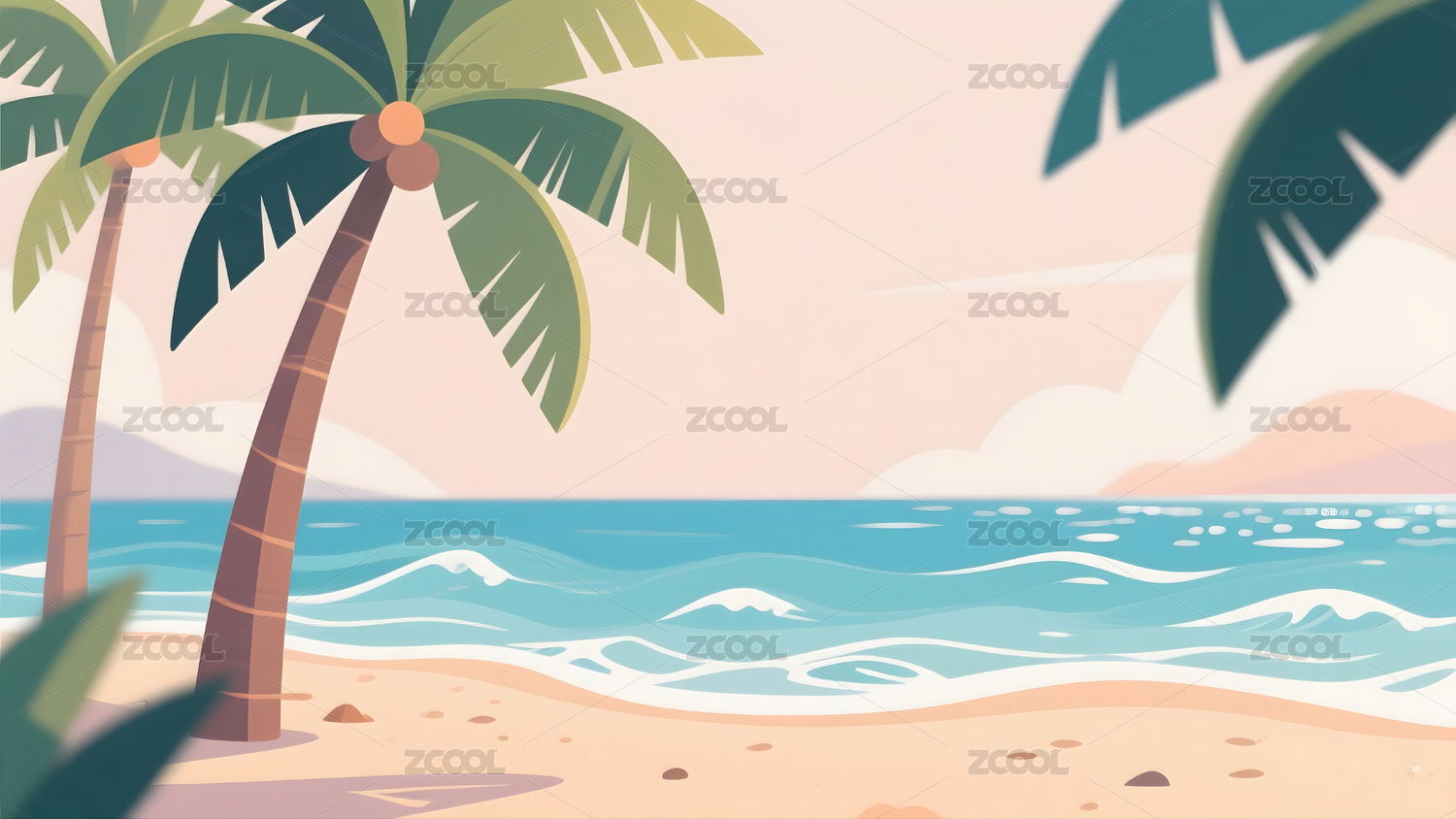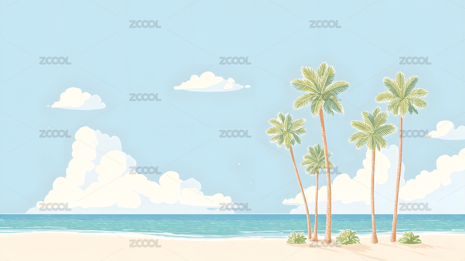 卡通风景夏季出游夏天海边度假旅游矢量插画