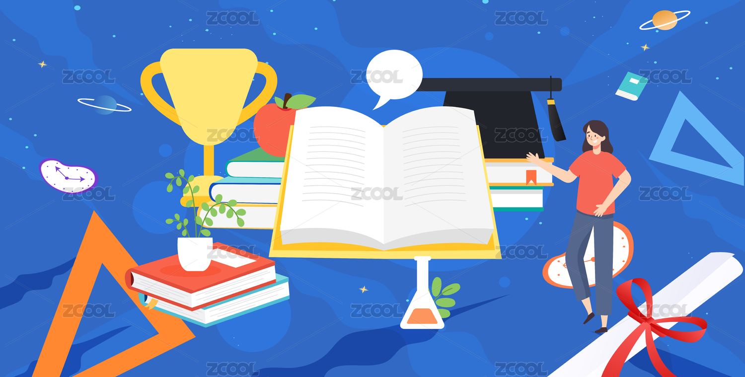 卡通手绘教育书籍文具场景插画
