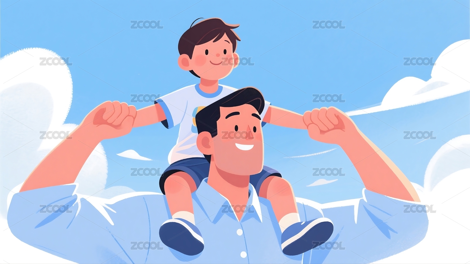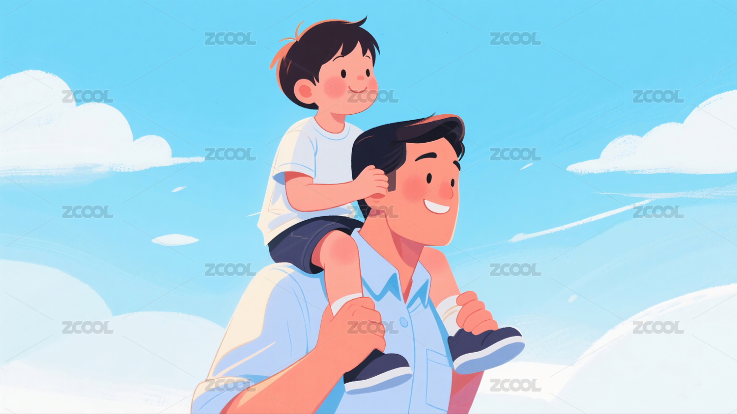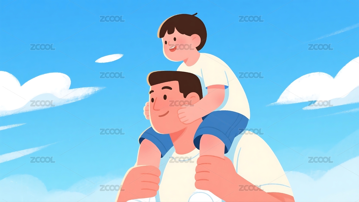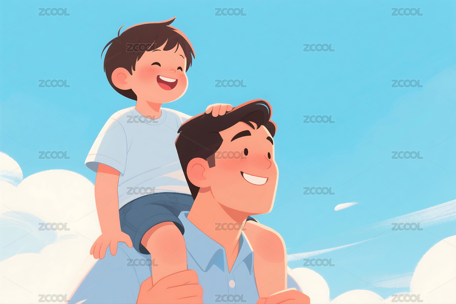 卡通儿童节父亲节亲子互动玩乐爸爸父爱插画