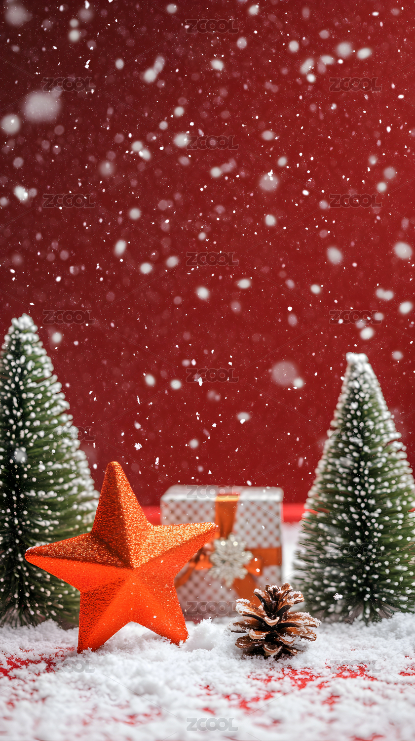 背景,红色,圣诞节,节日,雪,礼物,星星,圣诞树,装饰,冬
