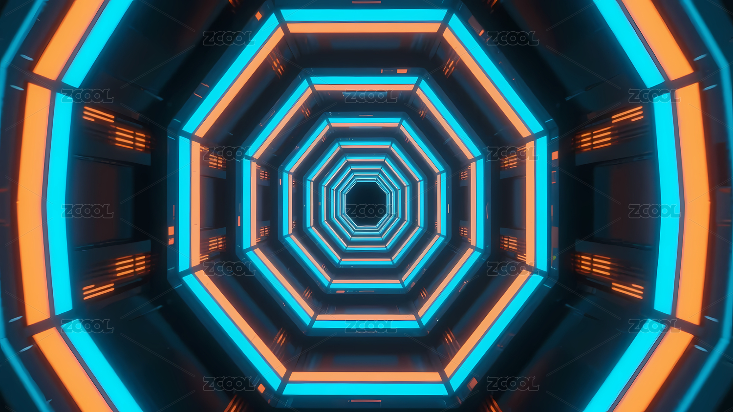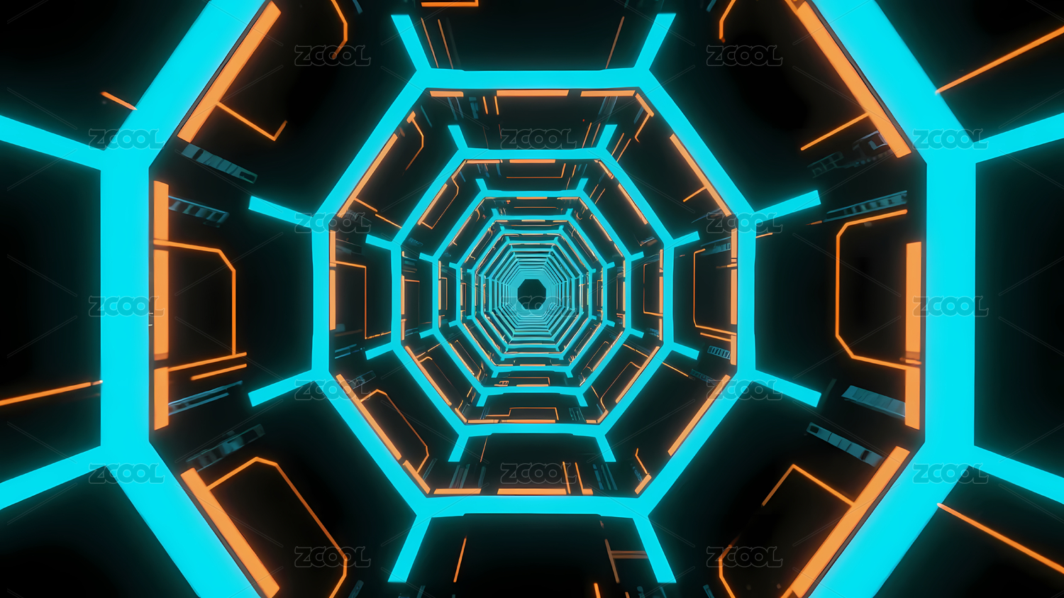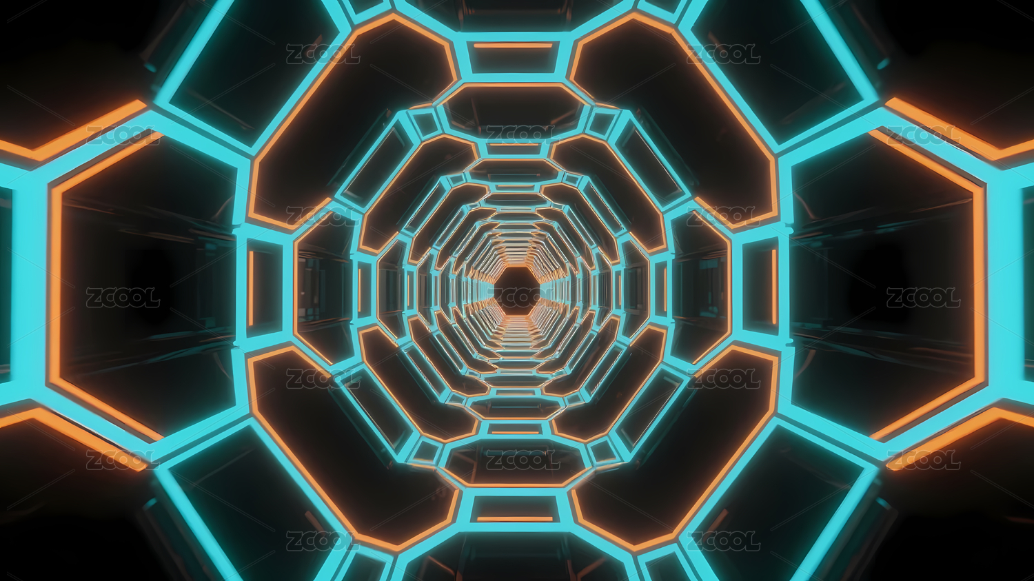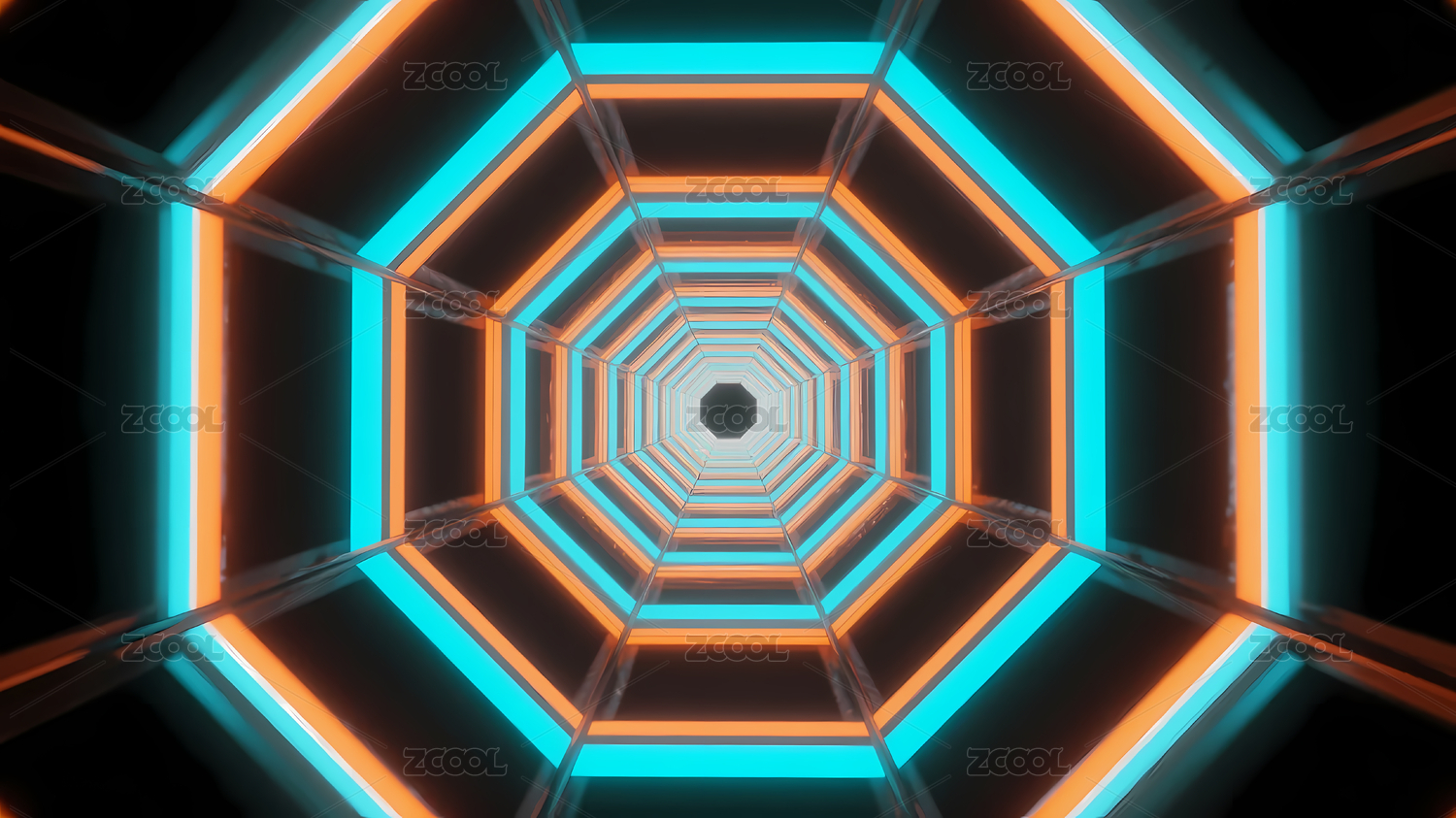 霓虹八边形隧道未来感
