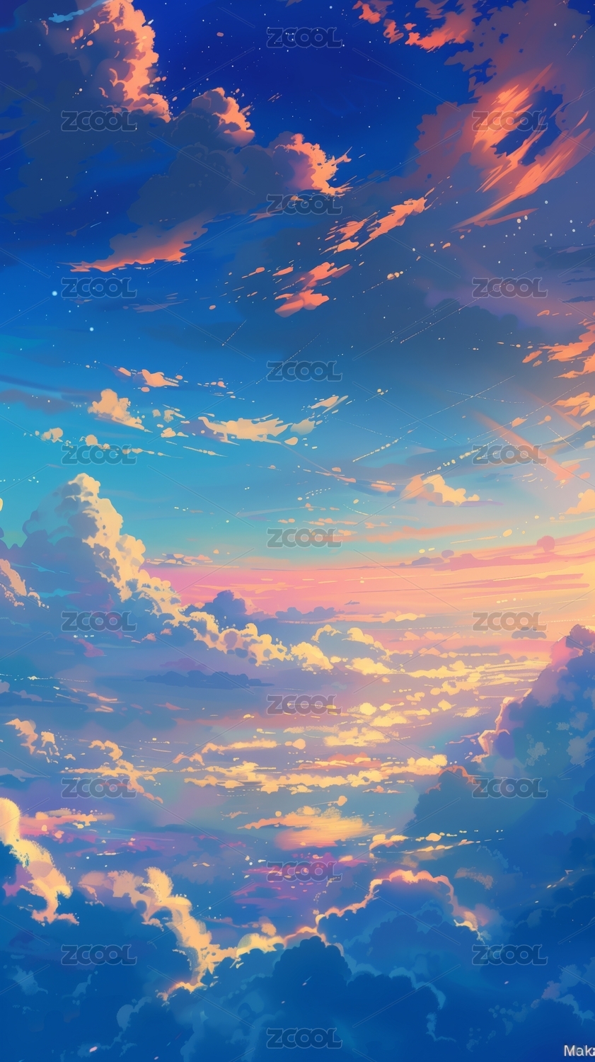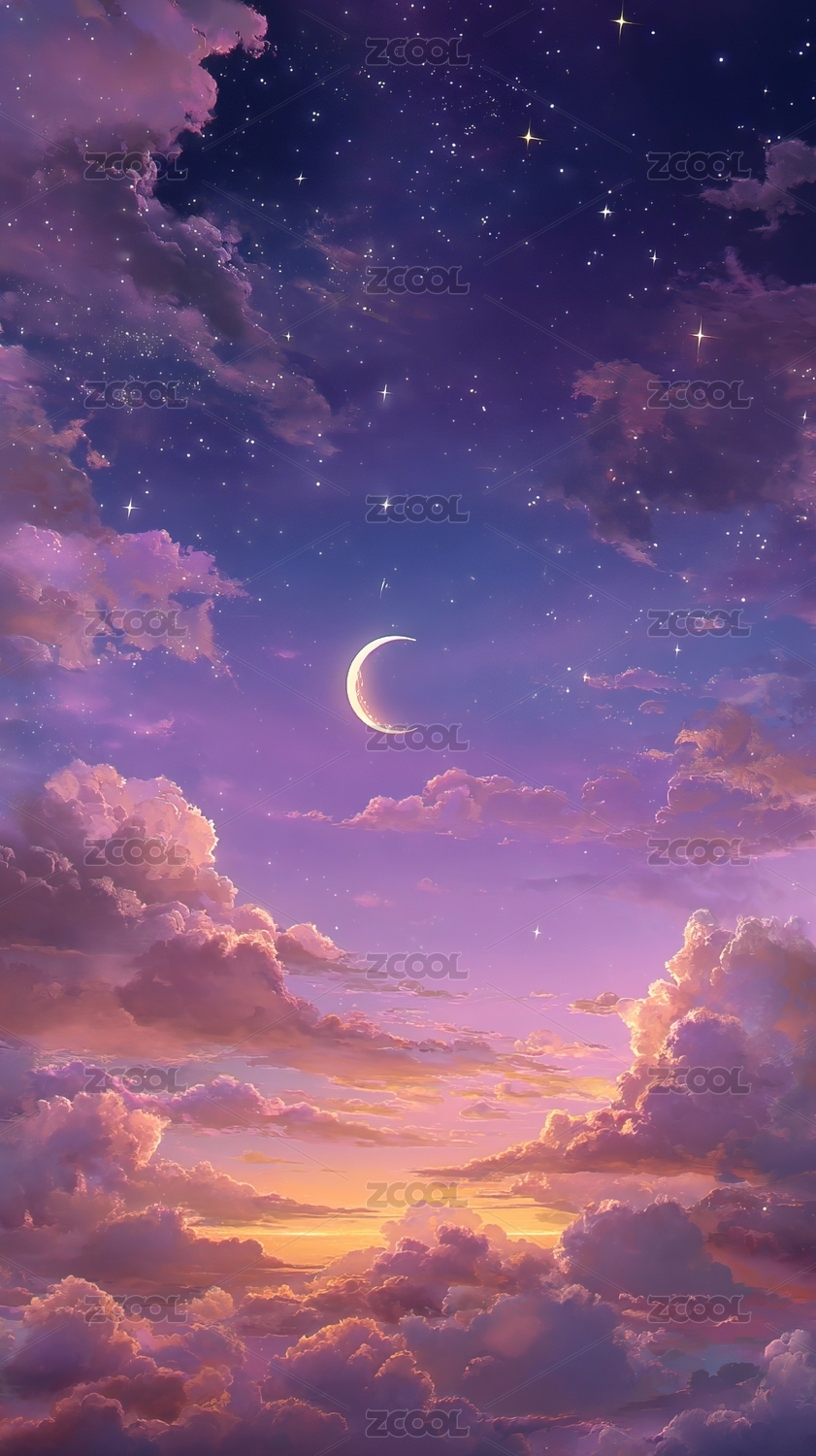 天空,月亮,云朵,梦幻,色彩,星星,景象,自然,美丽,宁静