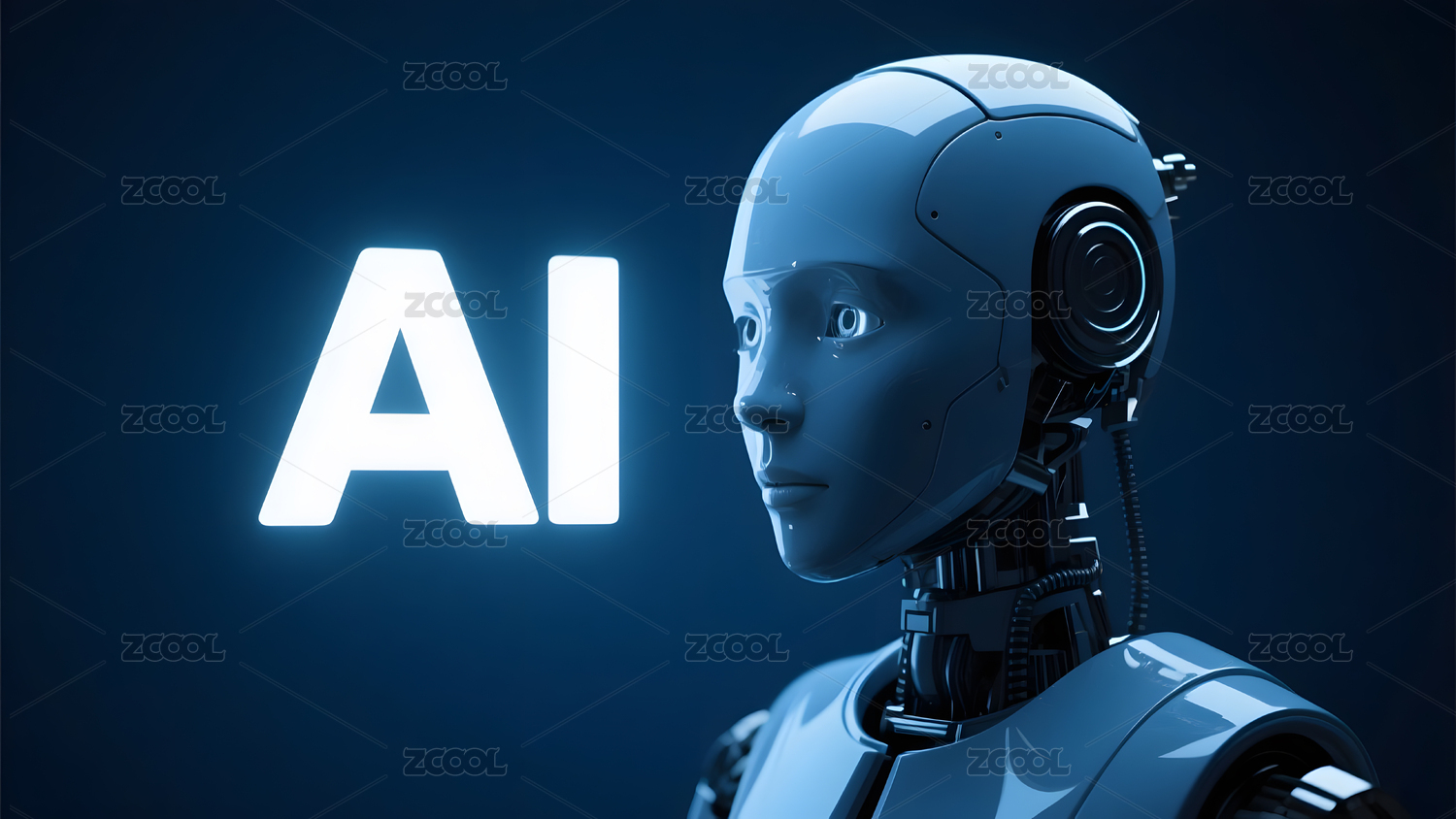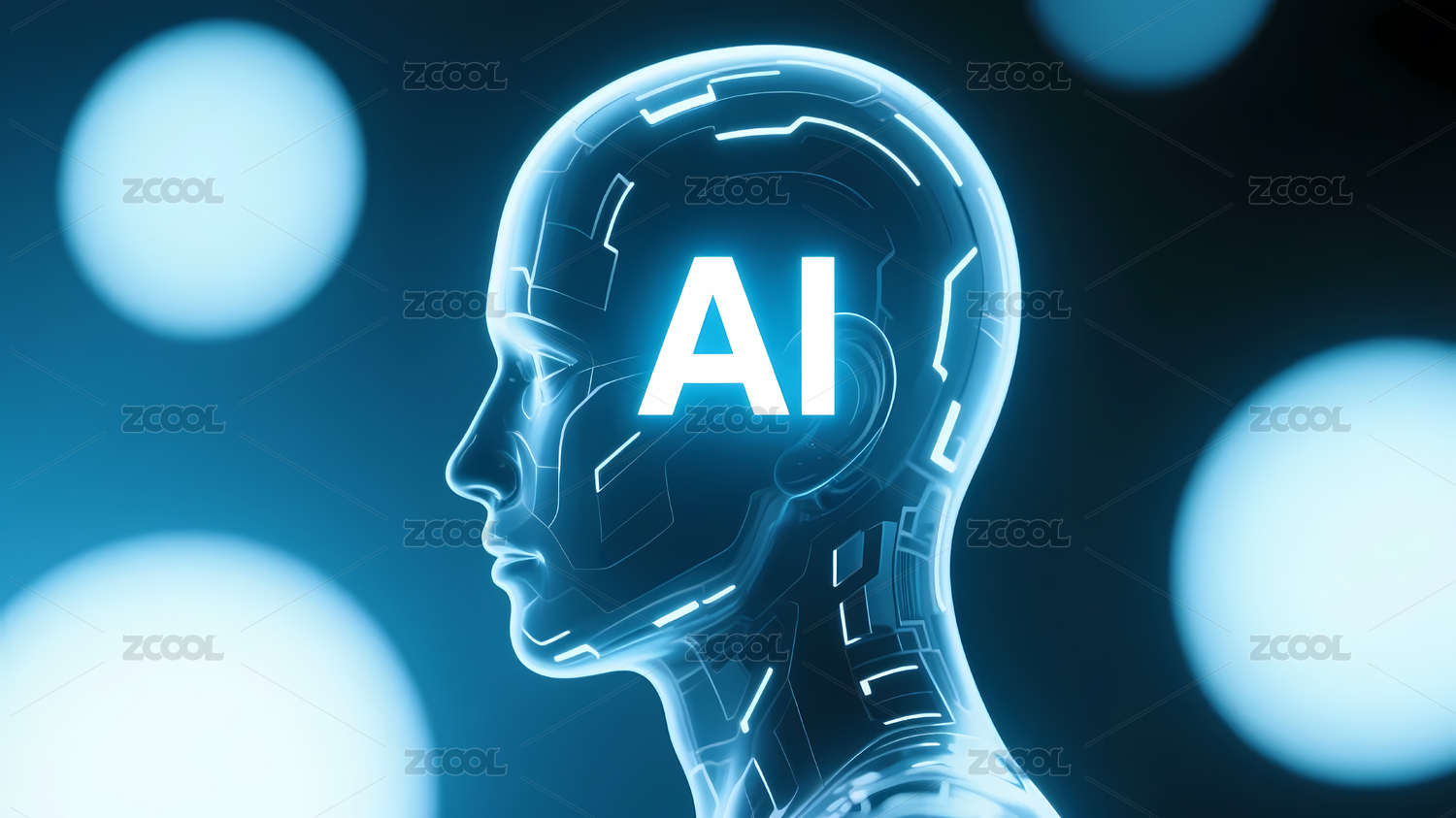 蓝色,科技,光点,未来,深色,头部,机器人,AI,点缀,主体