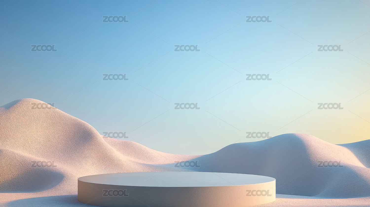 白色沙漠上的白色3D圆形展台