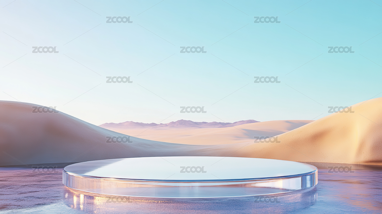 沙漠景观前的圆形展示台