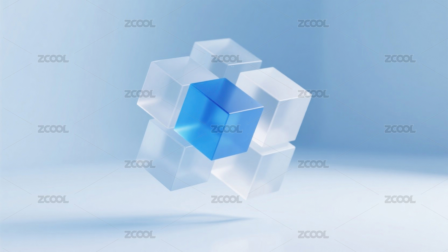 蓝色,简洁,几何,结构,抽象,光点,白色,立方体,天空,空间