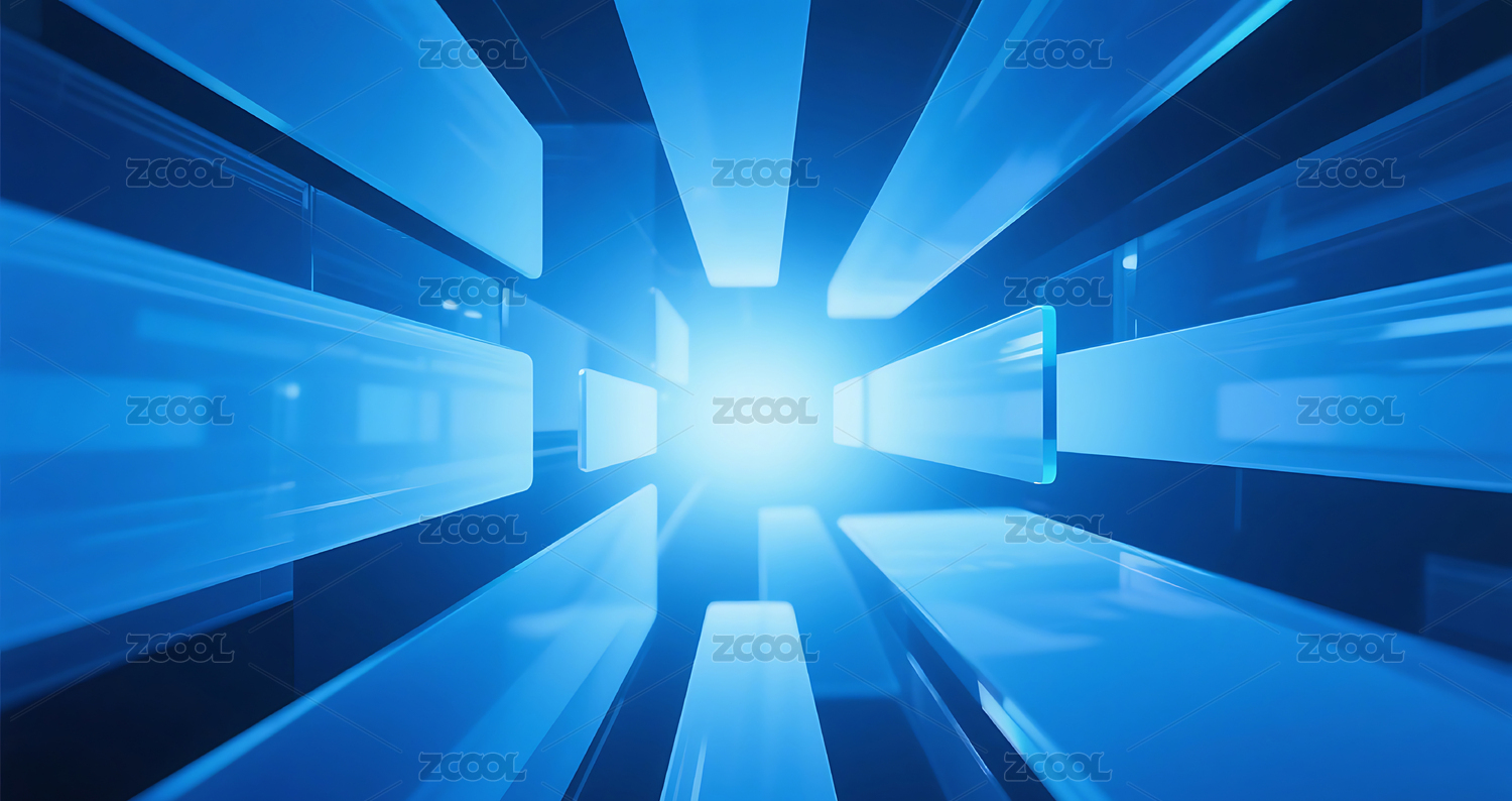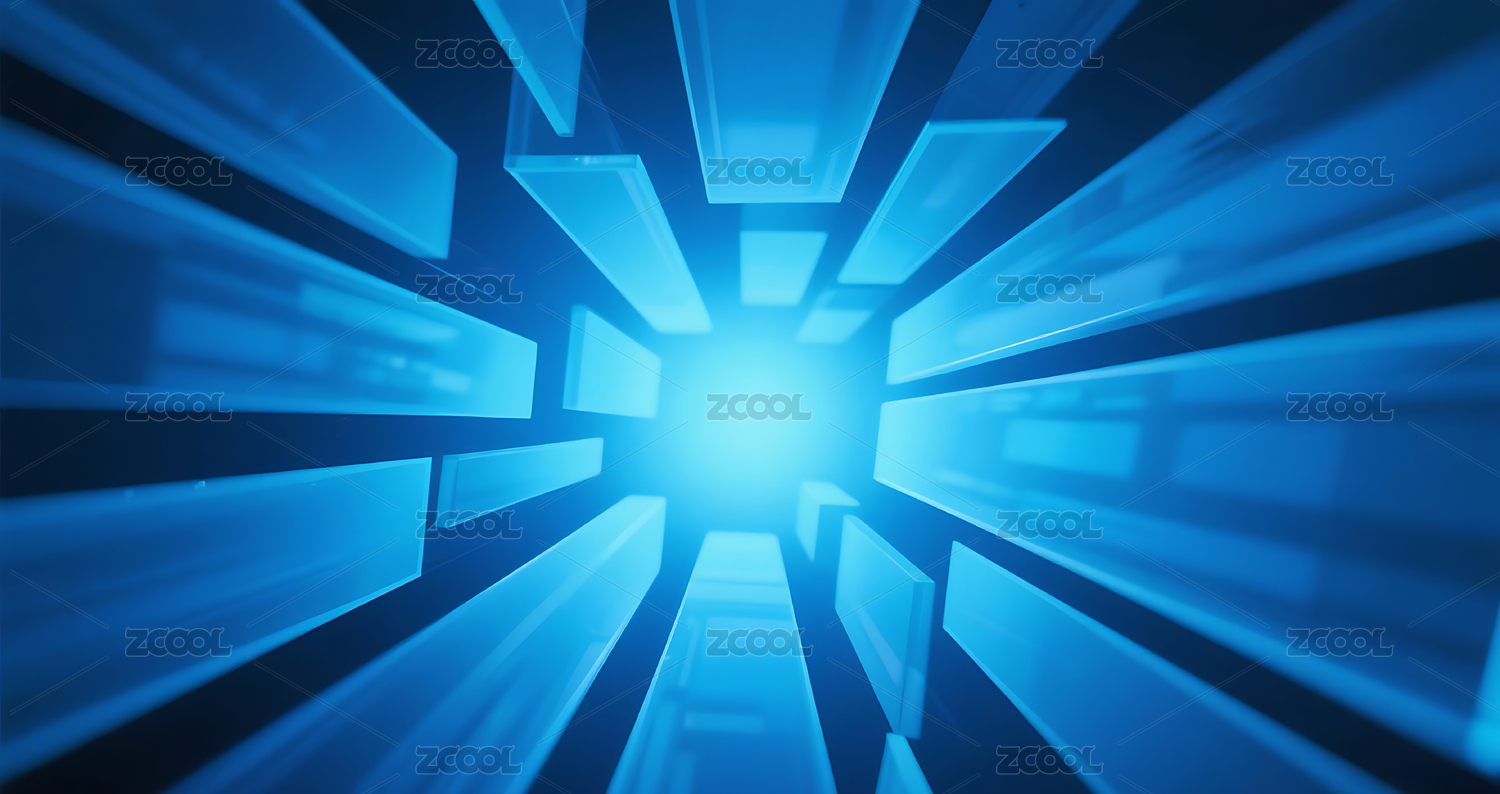 蓝色立体玻璃条块从中间向四周扩散背景