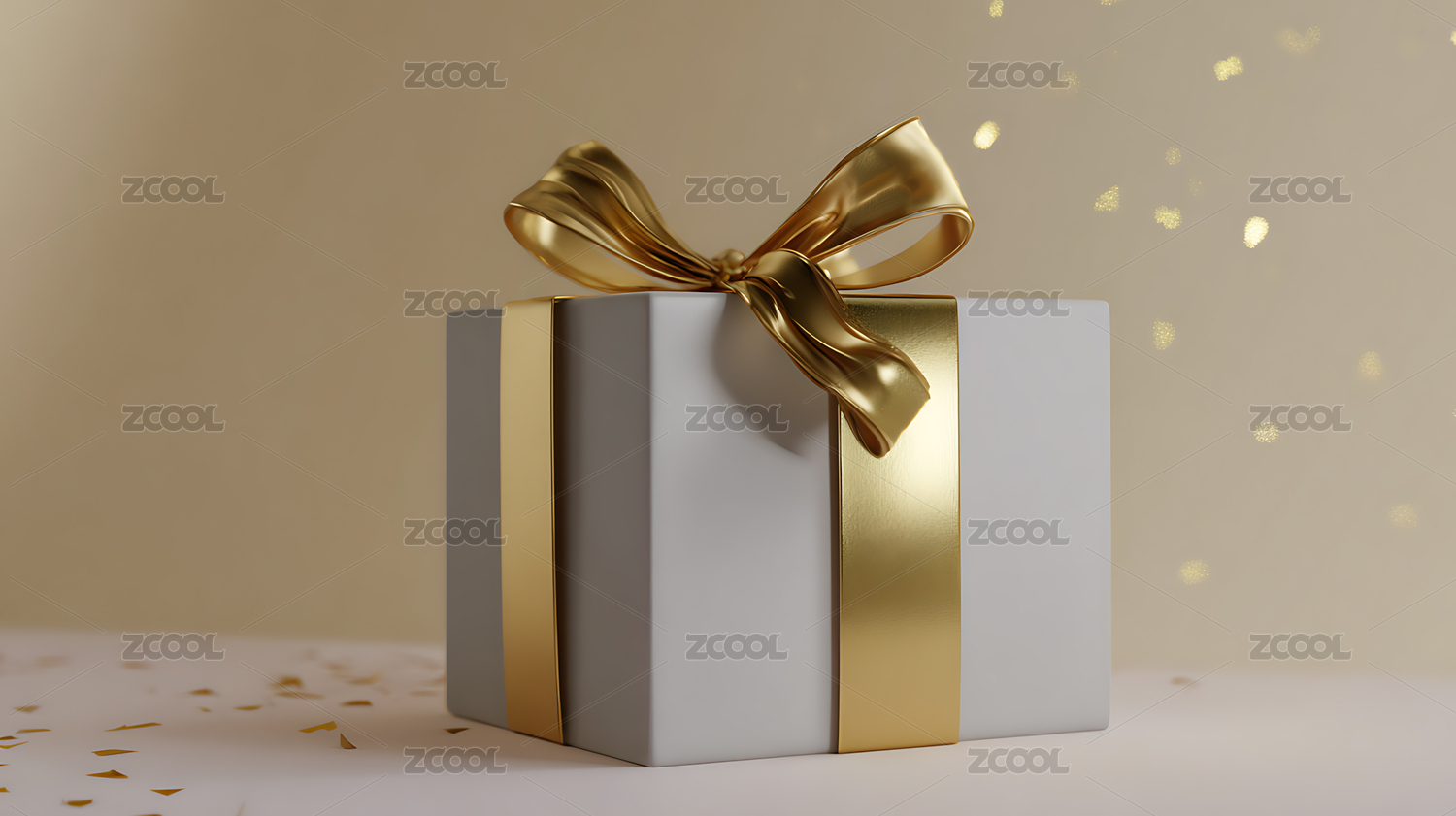 白色礼品盒金色丝带背景