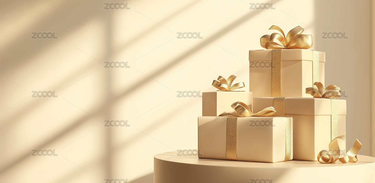 金色丝带装饰的礼盒