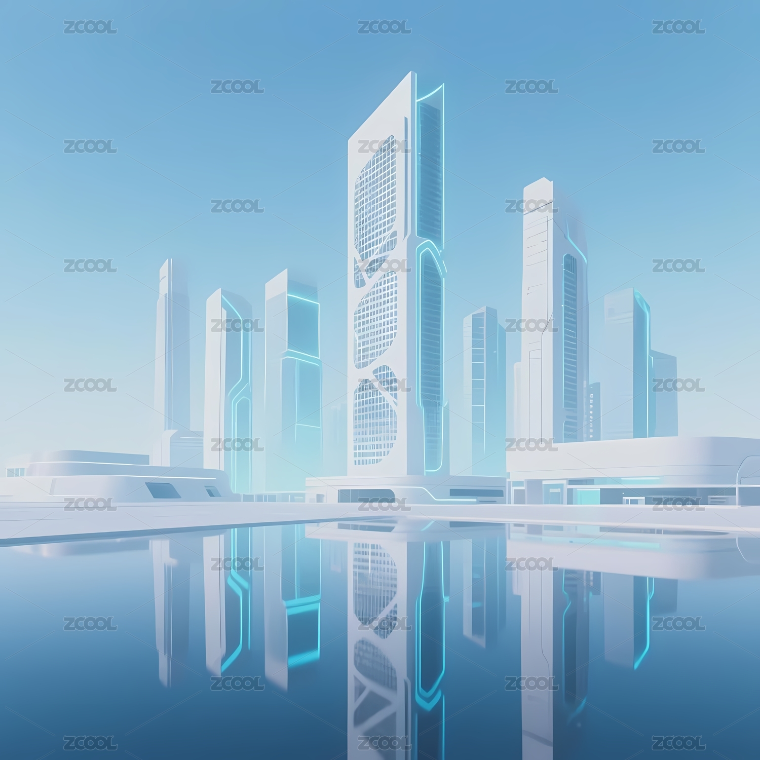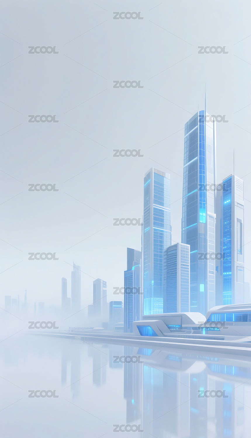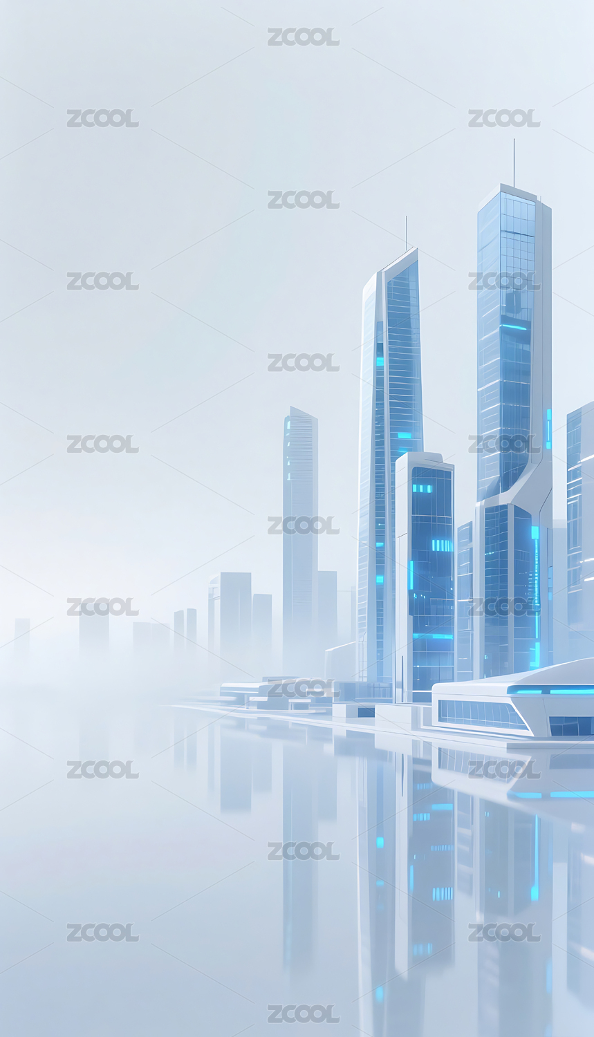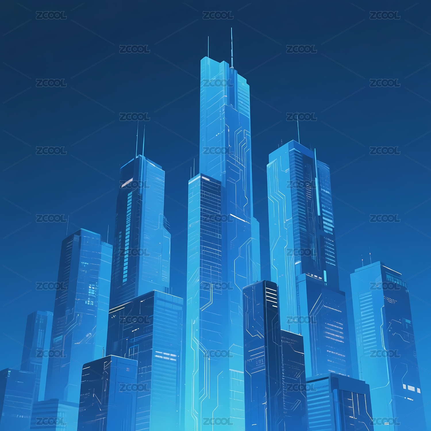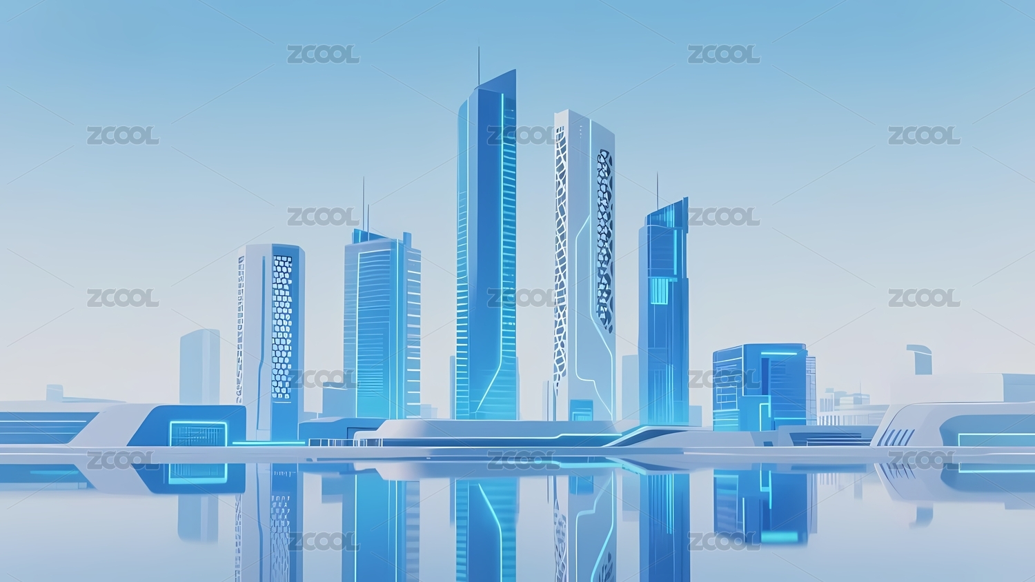 蓝色商务科技未来玻璃质感图形设计城市建筑
