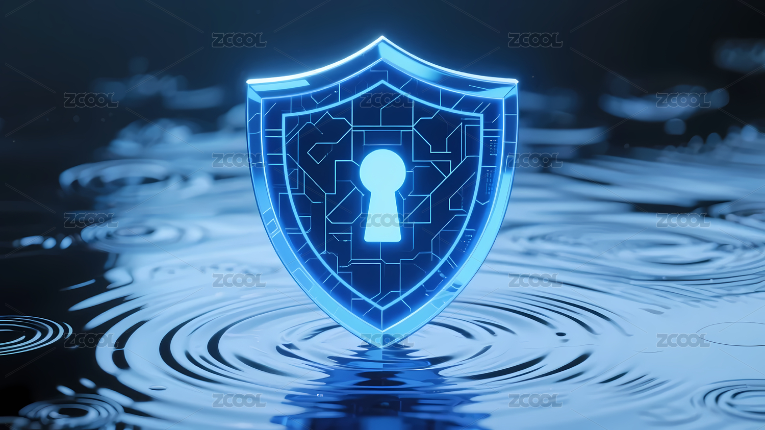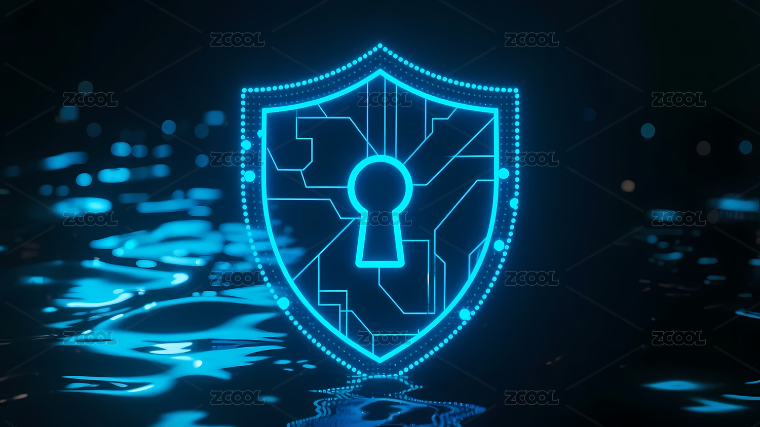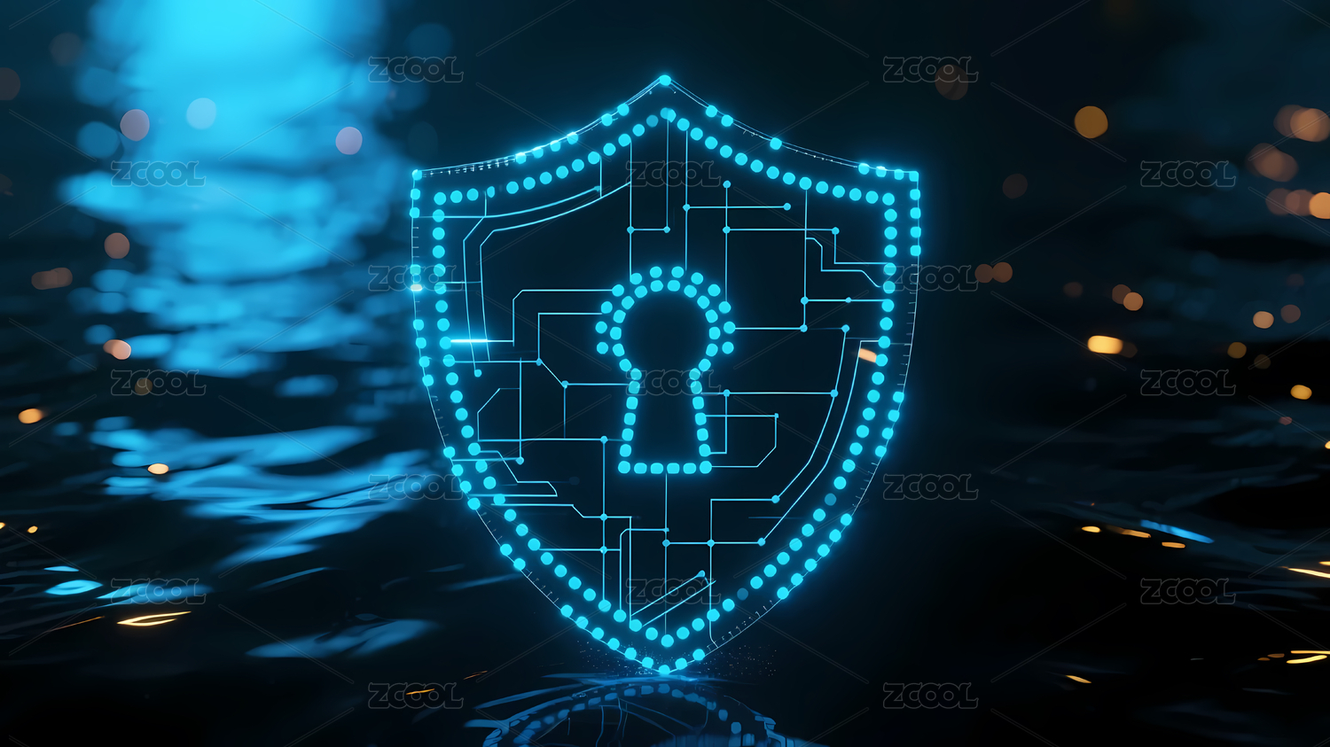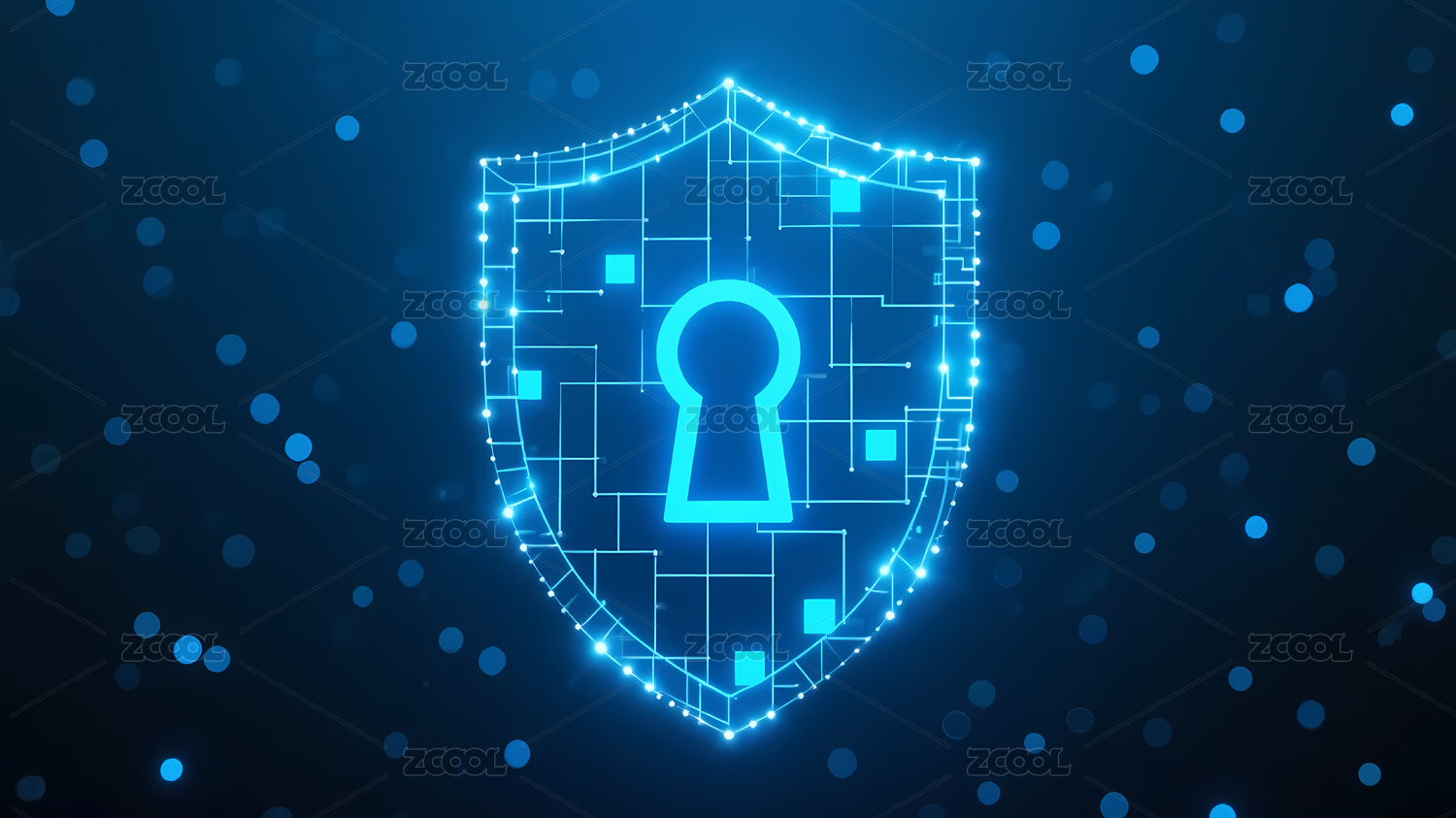 背景,盾牌,钥匙孔,蓝色,光点,线条,科技,安全,防护,深蓝