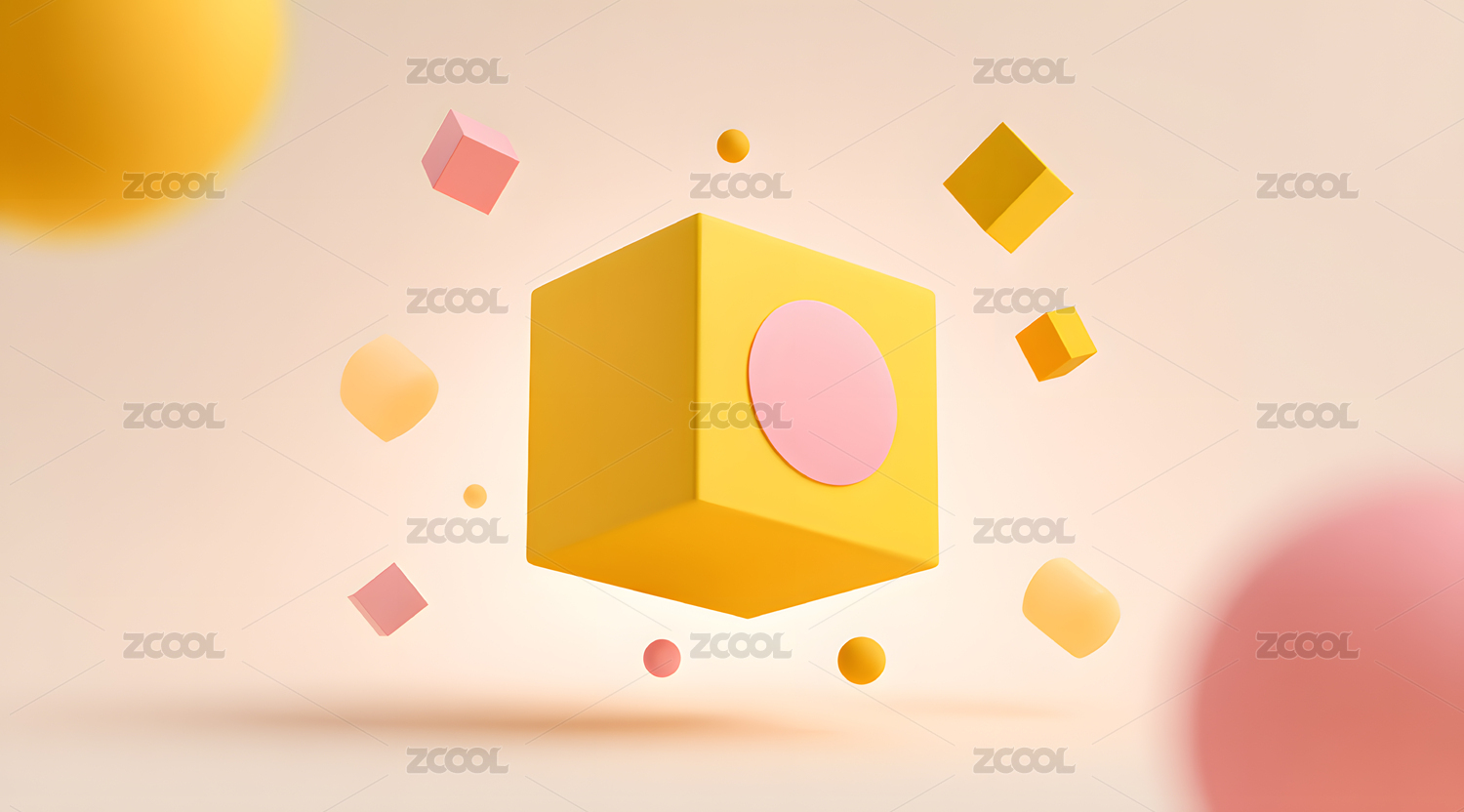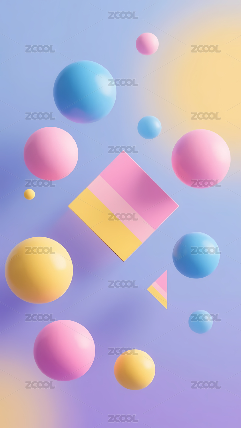 蓝色,现代,渐变,抽象,创意,正方形,球体,黄色,几何,柔和