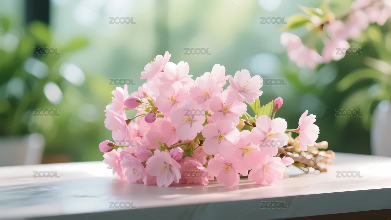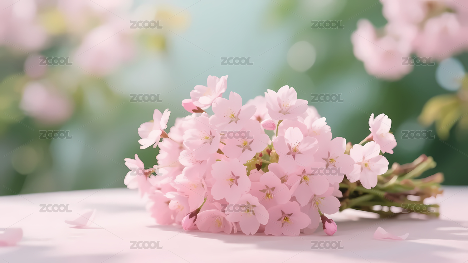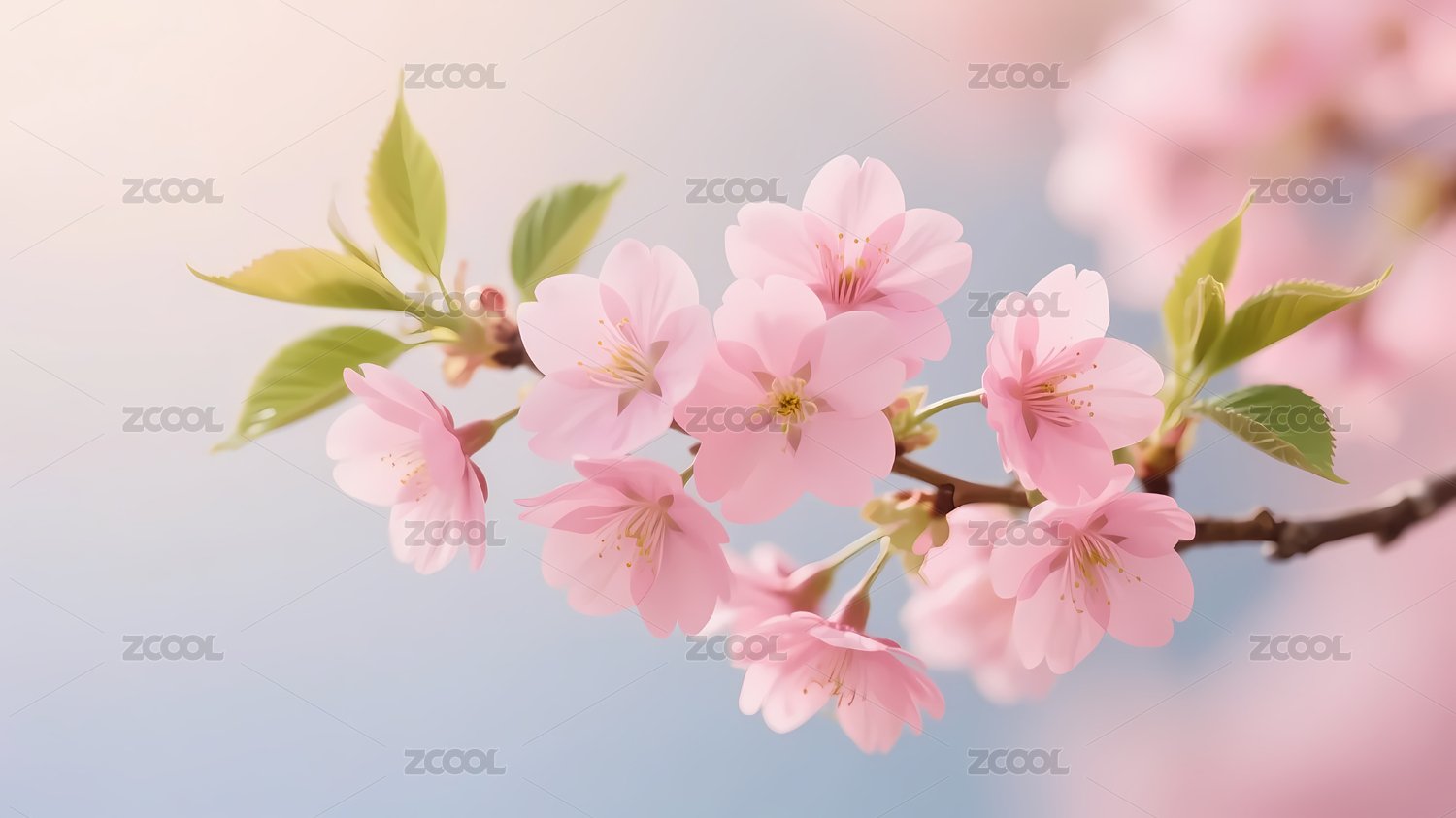 粉色樱花绿叶清新