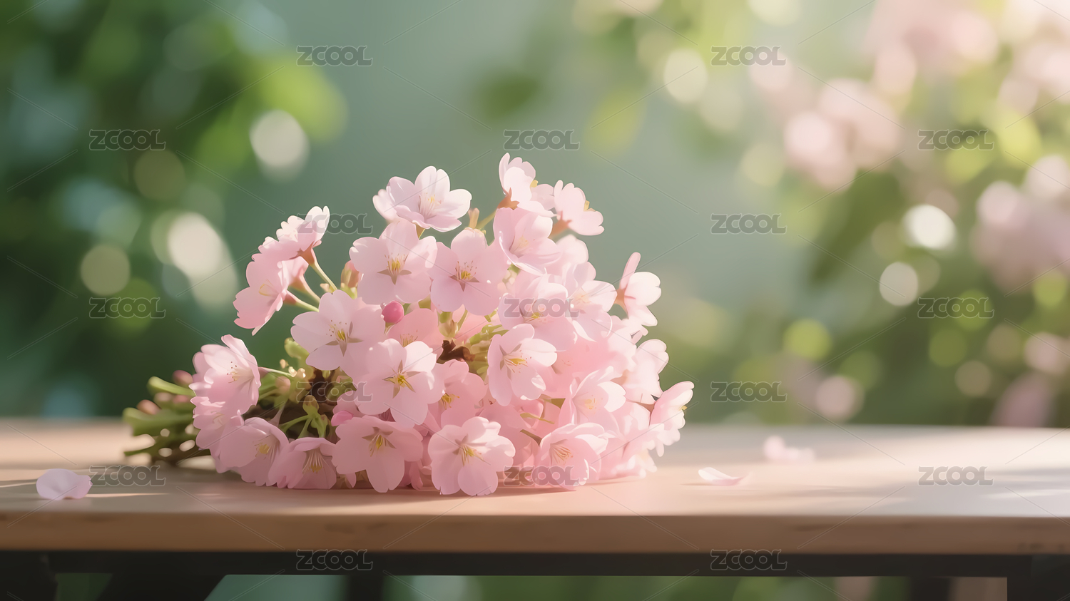 粉色樱花与木质托盘