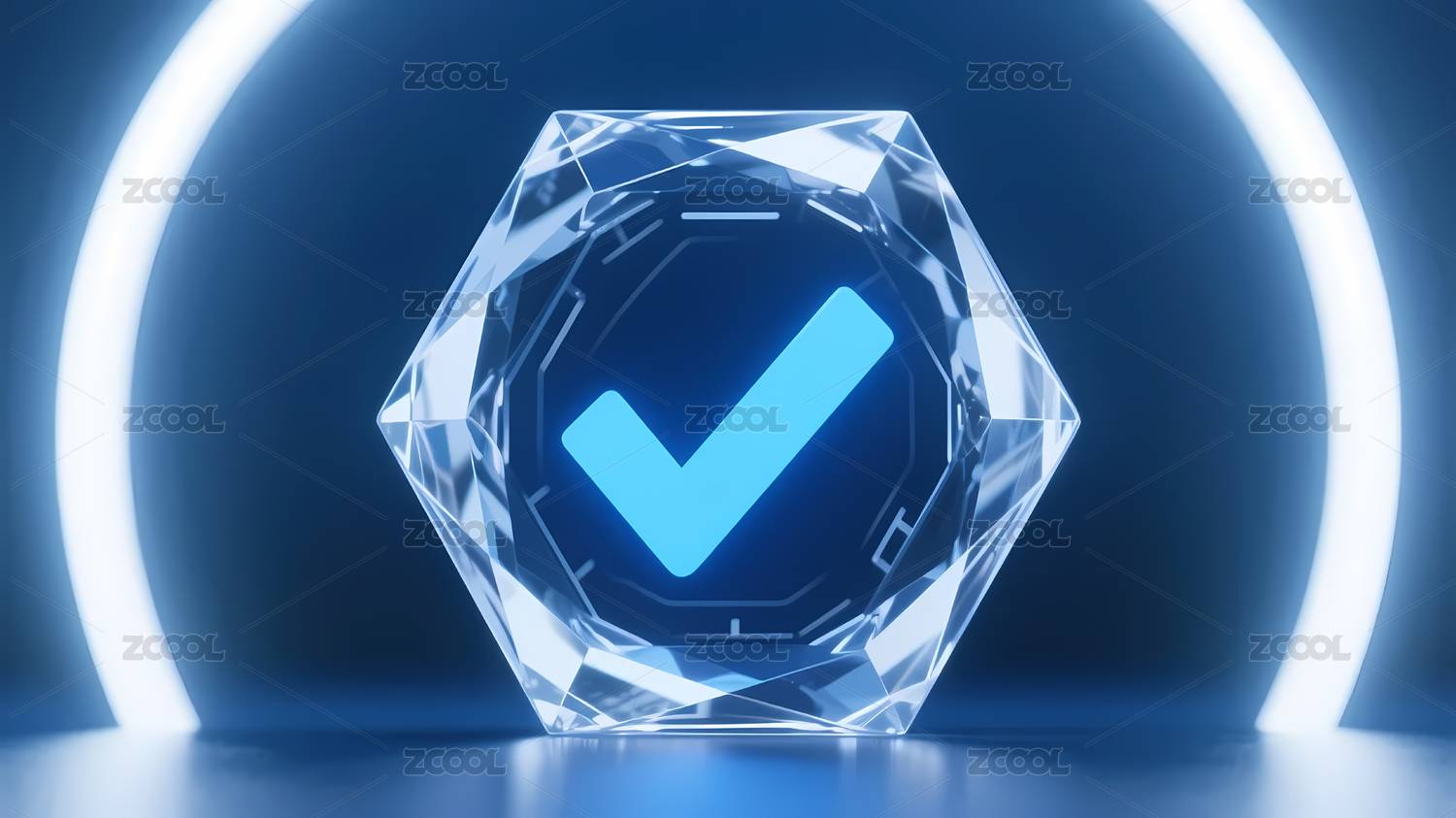 蓝色,背景,科技,渐变,对勾,透明,简洁,水晶,多面体,科学