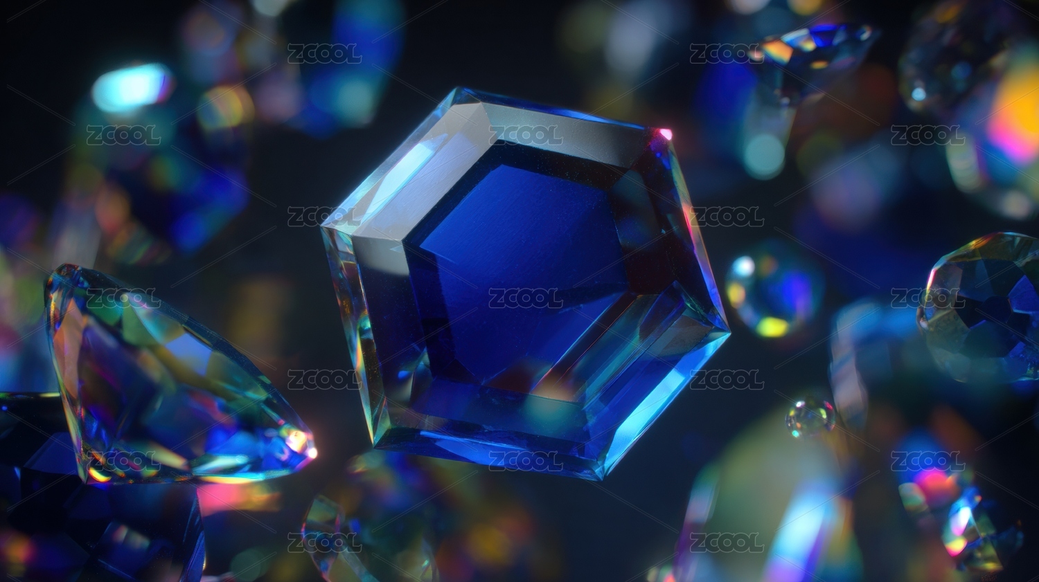 蓝色背景上一颗梦幻的钻石